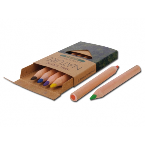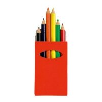 Buntstifte aus Holz (6 Stk.) in farbiger Pappschachtel.