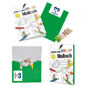 Unsere Malbücher bieten Kindern eine unterhaltsame und kreative Möglichkeit, die Welt spielerisch zu entdecken. Mit 18 liebevoll gestalteten Ausmalmotiven fördern sie nicht nur die Kreativität, sondern vermitteln auch wertvolles Wissen. Zwei Varianten stehen zur Auswahl: • Malbuch einzeln. • Mal-Set: Enthält zusätzlich eine praktische 6er-Buntstiftbox (Standardgestaltung), geliefert in einer hochwertigen, bedruckten Mappe. Veredelungsmöglichkeiten: • Standardausführung: Ab Lager lieferbar, optional mit zusätzlichem Logoeindruck. • Individuelle Gestaltung: Ab 500 Stück mit personalisierten Außenseiten f& ...