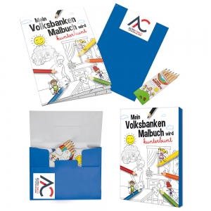 Individuelles Ausmalset in einer vollfarbig bedruckter Pappschachtel. Das Set beinhaltet Holzbuntstifte (12 Stk.) und ein Themenmalbuch. Mindestmenge: 100 Stk.
