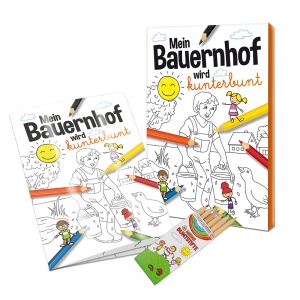 Unsere Malbücher bieten Kindern eine unterhaltsame und kreative Möglichkeit, die Welt spielerisch zu entdecken. Mit 18 liebevoll gestalteten Ausmalmotiven fördern sie nicht nur die Kreativität, sondern vermitteln auch wertvolles Wissen. Zwei Varianten stehen zur Auswahl: • Malbuch einzeln. • Mal-Set: Enthält zusätzlich eine praktische 6er-Buntstiftbox (Standardgestaltung), geliefert in einer hochwertigen, bedruckten Mappe. Veredelungsmöglichkeiten: • Standardausführung: Ab Lager lieferbar, optional mit zusätzlichem Logoeindruck. • Individuelle Gestaltung: Ab 500 Stück mit personalisierten Außenseiten f&u ...