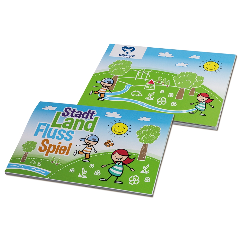 Unser Stadt-Land-Fluss Block ist der ideale Begleiter für Spieleabende oder unterwegs. Der Block enthält 25 Blätter des beliebten Spiels, das für jede Altersgruppe geeignet ist und garantiert für viel Spaß sorgt. Zwei Varianten stehen zur Auswahl: • Block einzeln. • Set: Enthält zusätzlich eine praktische 6er-Buntstiftbox (Standardgestaltung), geliefert in einer hochwertigen, bedruckten Mappe. Veredelungsmöglichkeiten: • Standardausführung: Ab Lager lieferbar, optional mit zusätzlichem Logoeindruck. • Individuelle Gestaltung: Ab 500 Stück mit personalisierten Außenseiten für ein einzigartiges Des ...