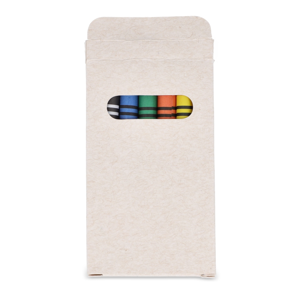 6 Wachsmalstifte in einer Schachtel aus recyceltem Milchkarton