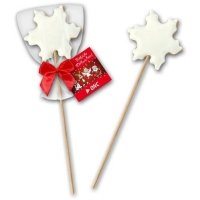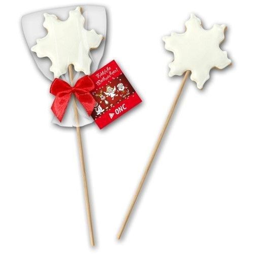 Verpackung: In Glanzbeutel mit roter oder weißer Satinschleife und bedruckter Karte auf Stöckchen aufgebunden.