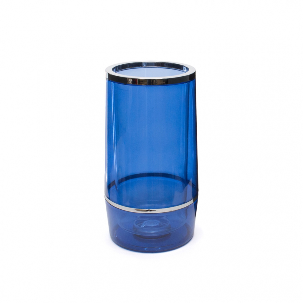 Flaschenkühler für (Wein-)Flaschen bis 750 ml in origineller transparenter Ausführung und verschiedenen Farben. Doppelwandig und mit Ringen in glänzendem Silber. Präsentiert in einer individuellen Box.