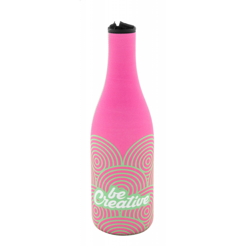Flaschenkühler aus strapazierfähigem PVC, mit verstellbarem Klettverschluss. Flüssiges Kühlmittel im Inneren und hitzeversiegeltes Finish. Erhältlich in einer Reihe von Farben.