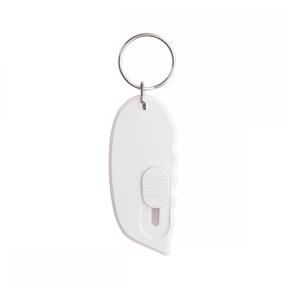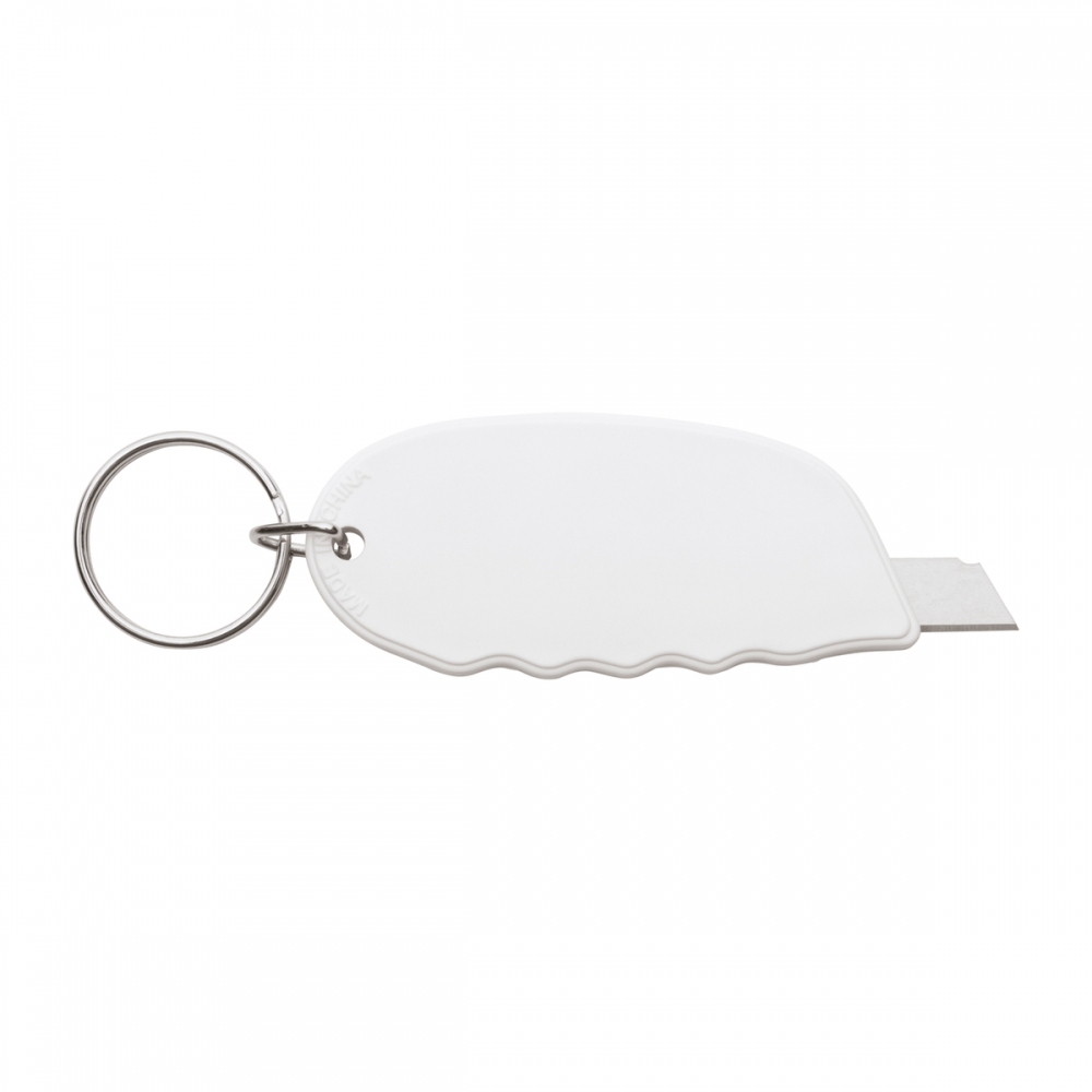 Ein ideales Werbe-Gadget mit toller Cutter-Funktion: Die Klinge lässt sich über einen Schieberegler herausschieben. Die Rückseite des Cutter-Schlüsselanhängers kann vollflächig im UV-Druck veredelt werden. Alternativ als Veredelung wählbar ist ein ein- bis zweifarbiger Tampondruck.