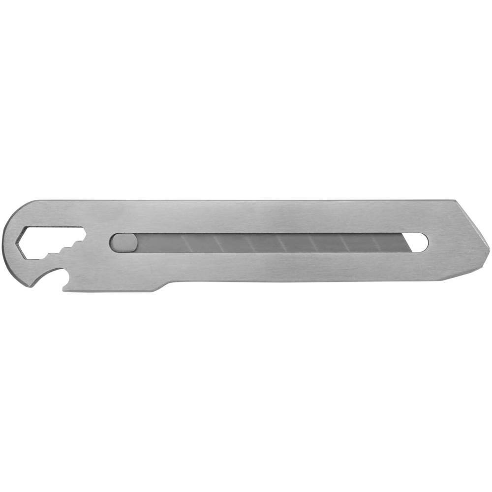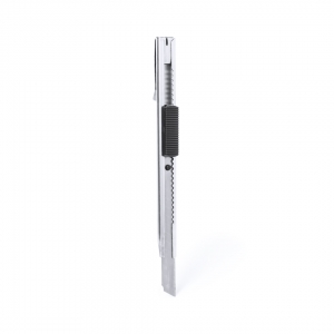 Handliches ABS-Kunststoffmesser mit Metallführung und Abbrechklingen. Farbe silber. Größe: 132 x 28 x 10 mm Werbeanbringung: Tampondruck Druckfläche: 65 x 7 mm