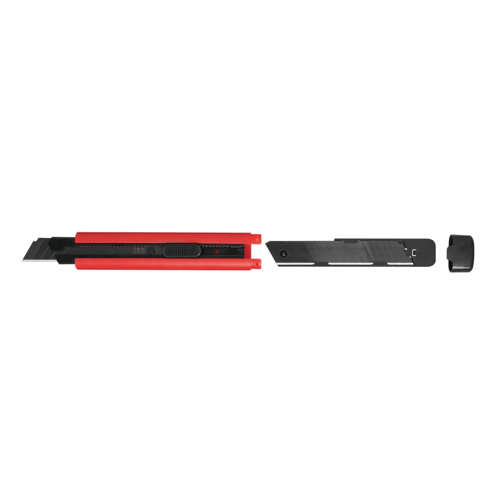 Allround-Cutter mit automatischer Klingennachführung. Das robuste ABS-Gehäuse mit gummierter Oberfläche garantiert ein sicheres Arbeiten und Führen der Klinge. Die handelsüblichen Abbrechklingen können in der Feststellautomatik arretiert werden. Im Klingenfach können zusätzlich 2 Klingen aufbewahrt werden. Durch die automatische Nachführung werden verbrauchte Klingen schnell und einfach ersetzt.