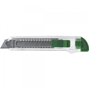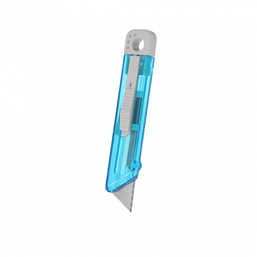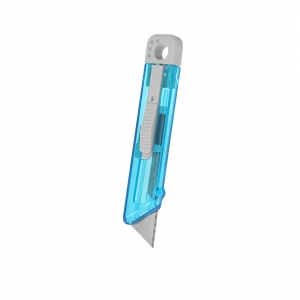 Cuttermesser aus Kunststoff mit Federkernautomatik, transparent, gefrostet.