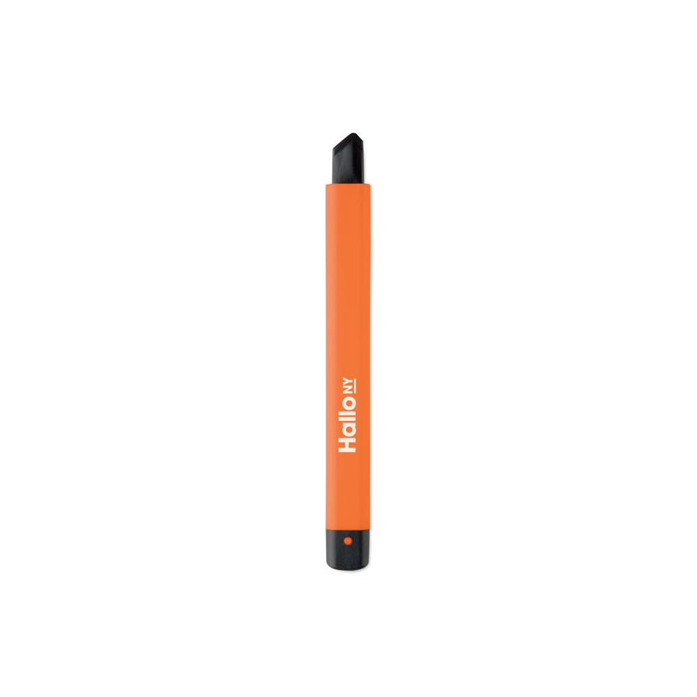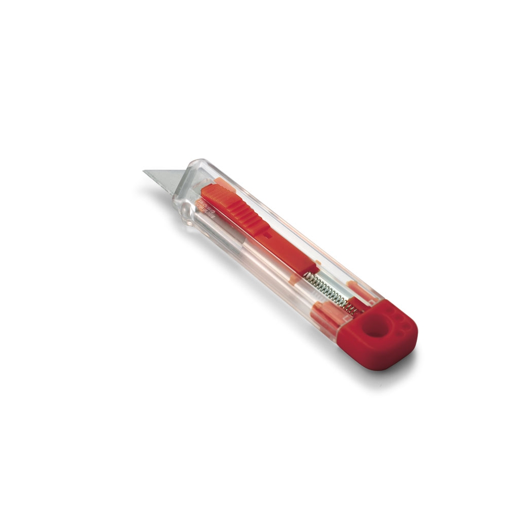Artikel-Nr: MCM8900203Transparentes Kartonmesser mit farbigem Endstück und abtrennbarer Feststellklinge. Ihren gewünschten Werbedruck platzieren wir mittig auf den Cutter.