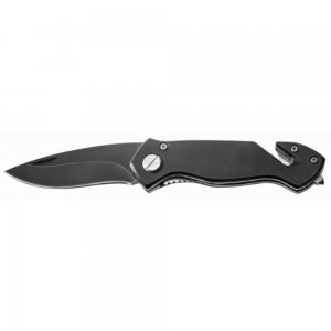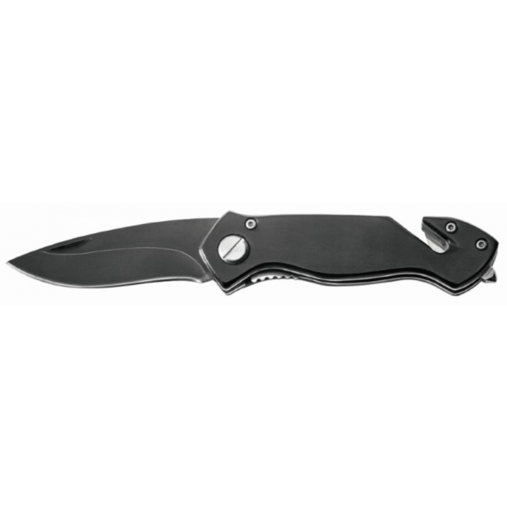 Kompaktes Taschenmesser im Aluminiumgehäuse mit Gurtcutter und Nothammer. Qualitätsstahlklinge, VPE 200. Designkarton