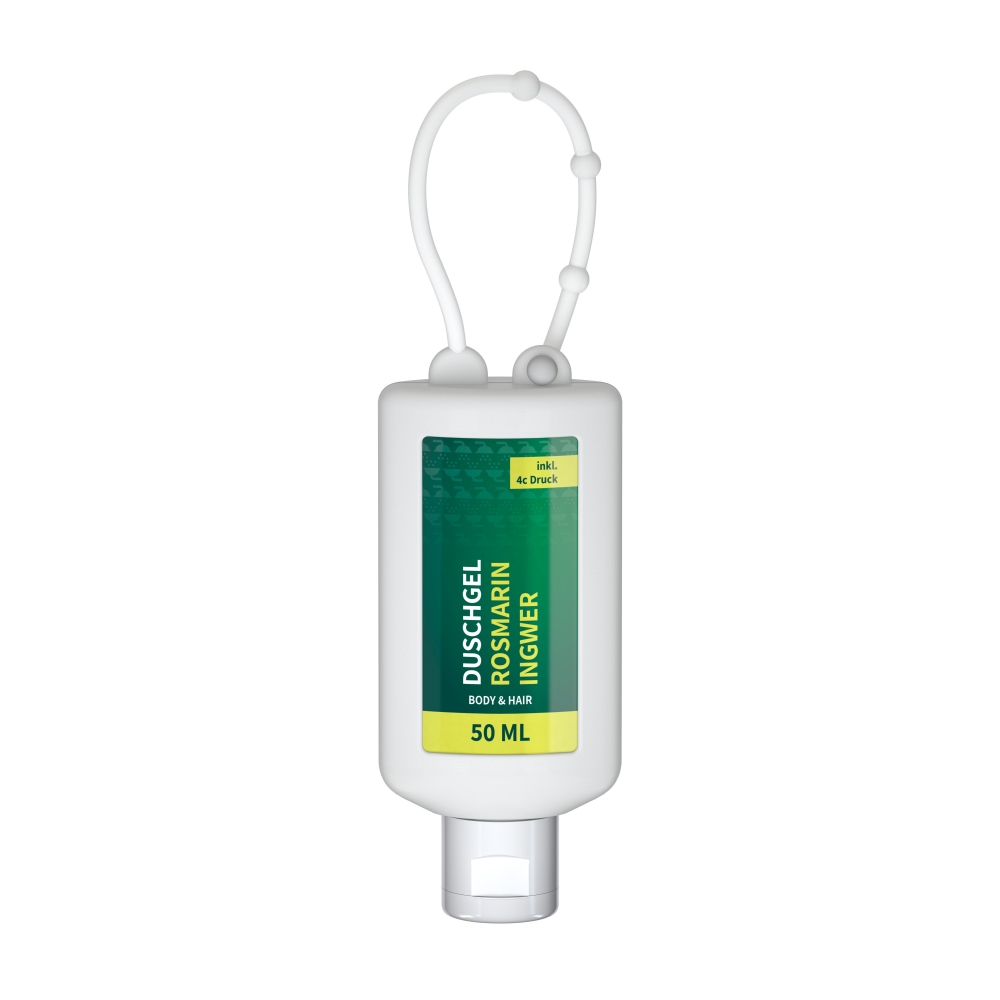 Duschgel Rosmarin-Ingwer, 50 ml Tube (weiß) mit Klappdeckel. Das Body & Hair Duschgel mit dem Mix aus Rosmarin und Ingwer regt mit seinem umwerfend würzig-frischen Duft die Sinne an und macht das Duschen zum Erlebnis! Es entsteht ein angenehmer Schaum, der Haut und Haare reinigt und zugleich pflegt. • Vegan • pH-hautneutral • Ohne Parabene • Ohne Konservierungsstoffe • Dermatologisch getestet "Sehr gut hautverträglich" • Hergestellt in Deutschland FullbodyPrint: Vollflächige 360° Bedruckung der gesamten Tube inklusive Siegelnaht. Der Druck erfolgt direkt auf die Tube in atemberaubender 4c ...