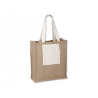 Einkaufstasche mit Besatz aus Jute. Lange Tragegriffe. Baumwolle 160 g / m².