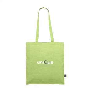 Baumwolltasche aus 75% recycelter Baumwolle und 25% recycelten Kunststoffen (rPET) mit langen Tragehenkeln und einer besonders festen Grammatur von 180g / m². Ihre Werbung wird auf eine Seite gedruckt.