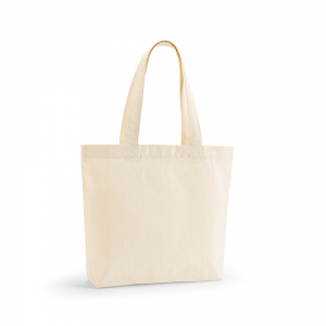 Einkaufstasche aus Organic Cotton mit langen Tragegriffen und Bodenfalz. 220 g / m².