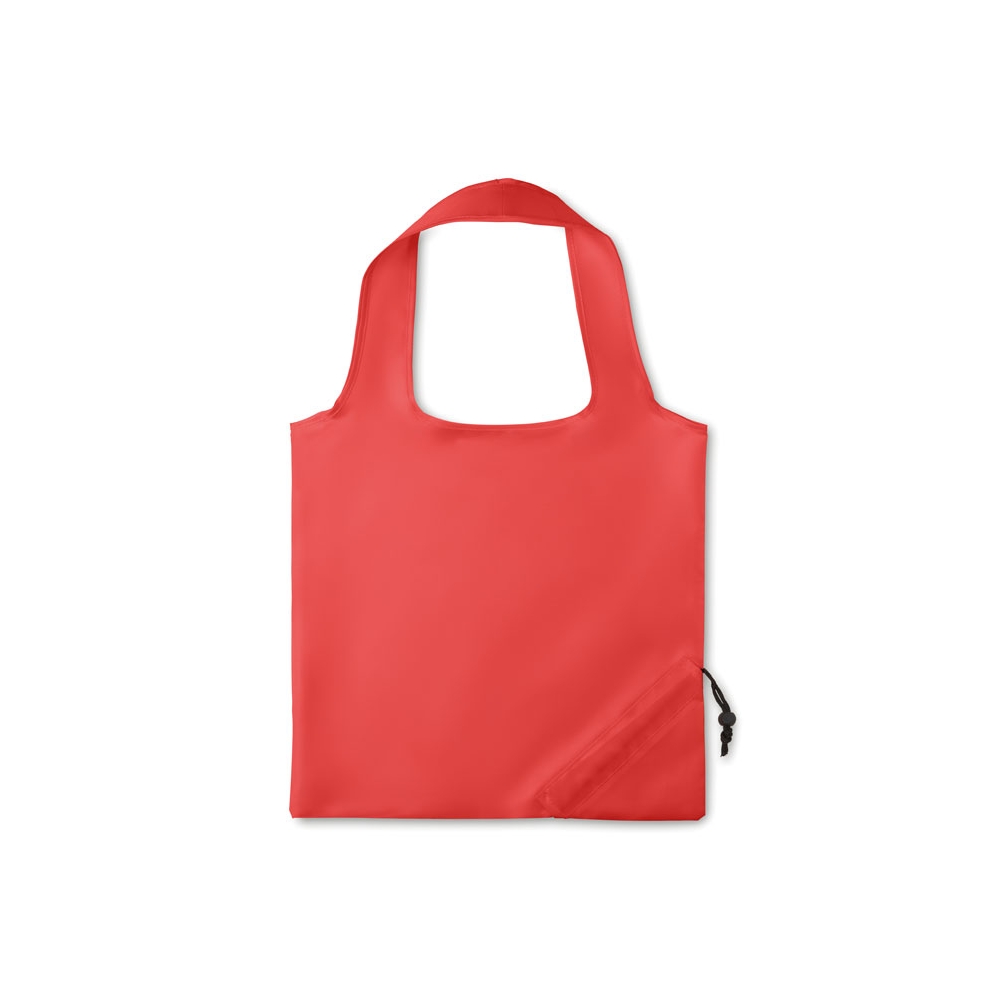 Faltbare Einkaufstasche aus robustem 210D Polyester mit Tragehenkeln. Der Werbeaufdruck erfolgt direkt auf die Tasche. Für 2C oder mehr, Preise auf Anfrage.