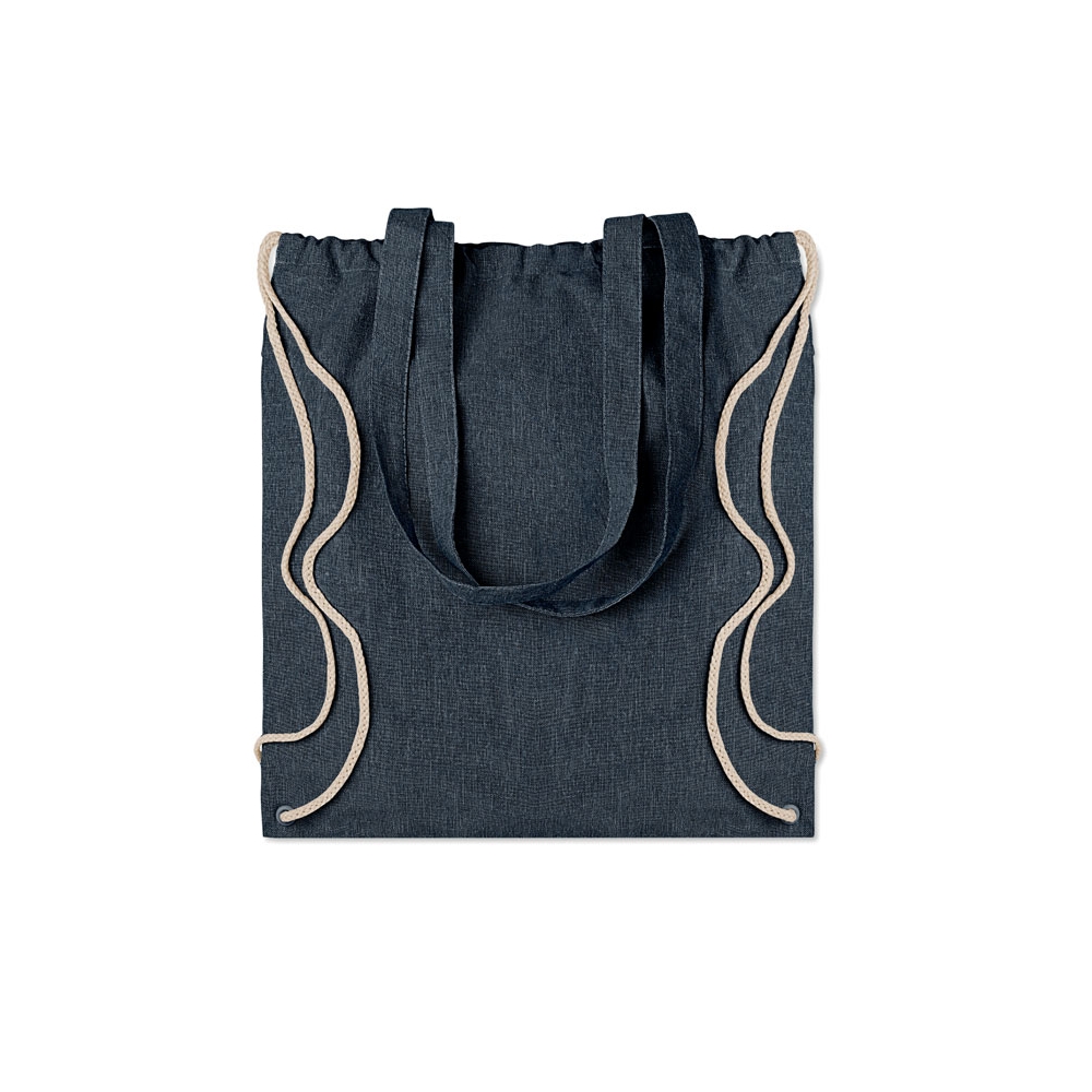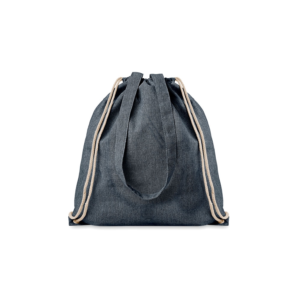 2 tone (recycelte Baumwolle und recyceltes Polyester) Einkaufstasche mit Kordelzug und langen Henkeln (20%/80%). ca. 140 gr / m². Dieser Artikel kann nach dem Bedrucken schrumpfen.