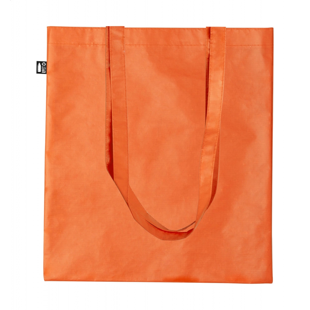 Laminierte Einkaufstasche aus RPET (105g / m²) mit langen Henkeln. Mit RPET-Label.