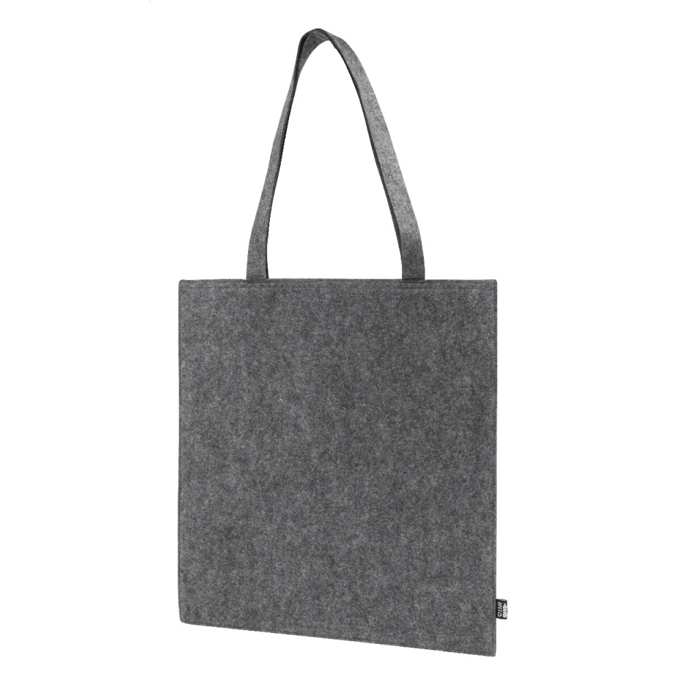 Einkaufstasche aus RPET-Filz mit langen Griffen. Mit RPET-Label.