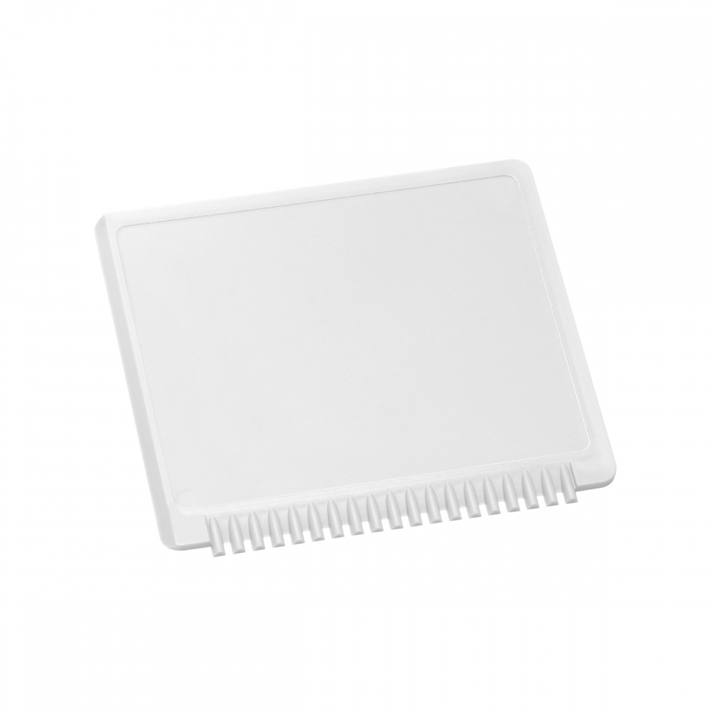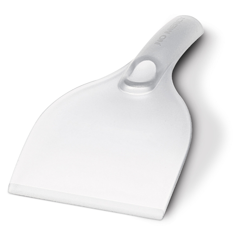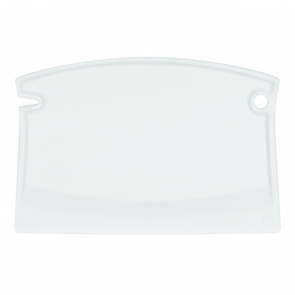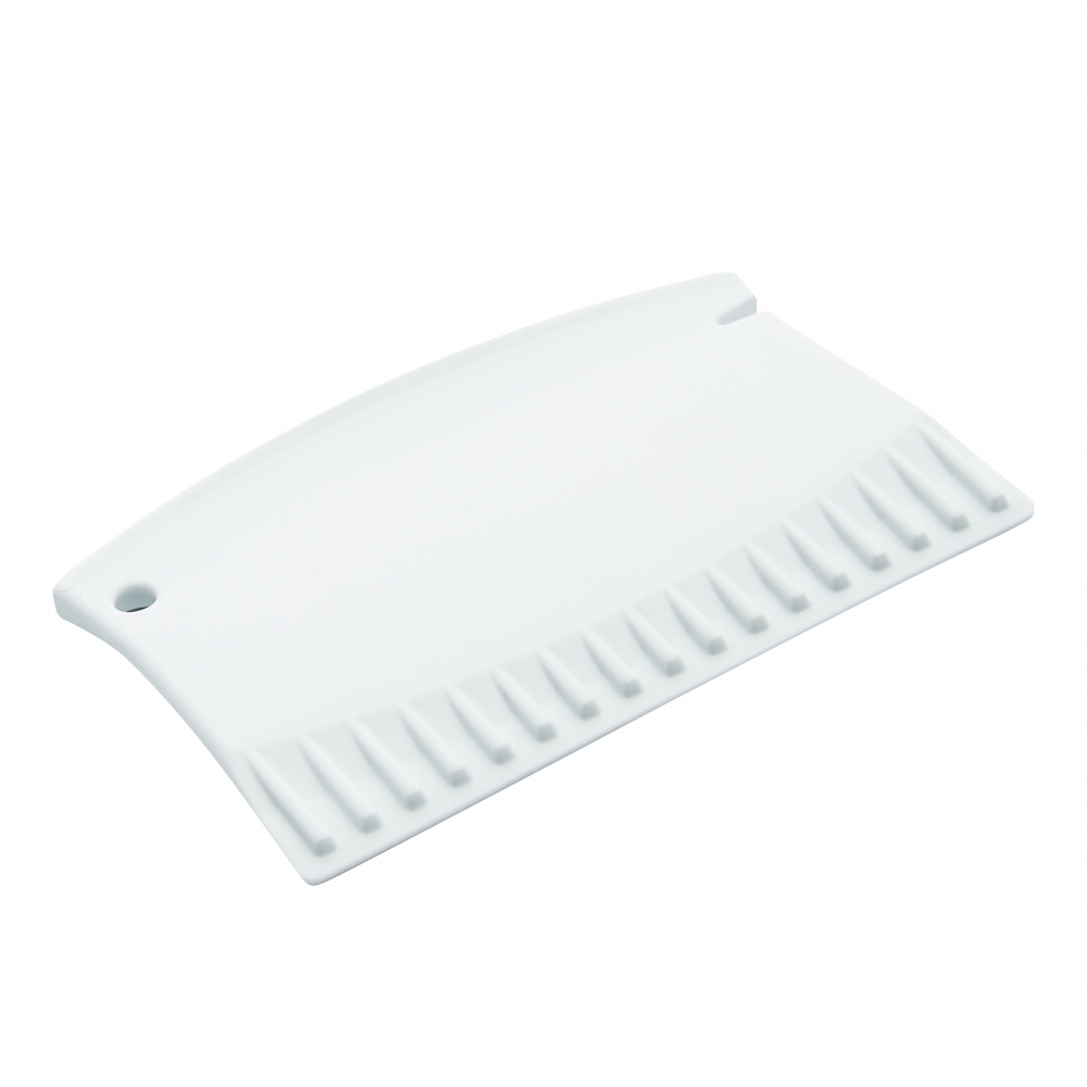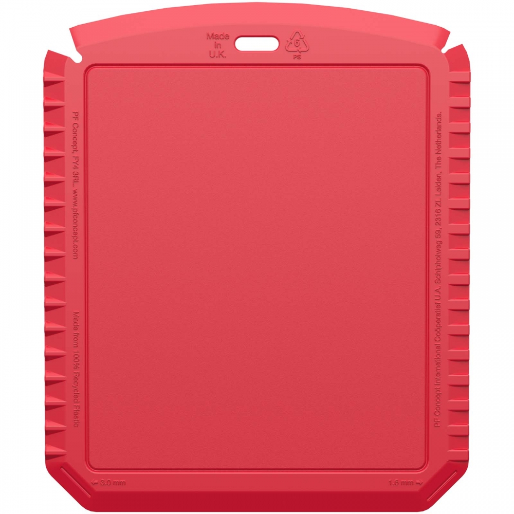 Flacher, rechteckiger Eiskratzer mit großer Werbefläche, Kratzzähnen und glatter Kratzkante. IMould-Veredelung möglich.