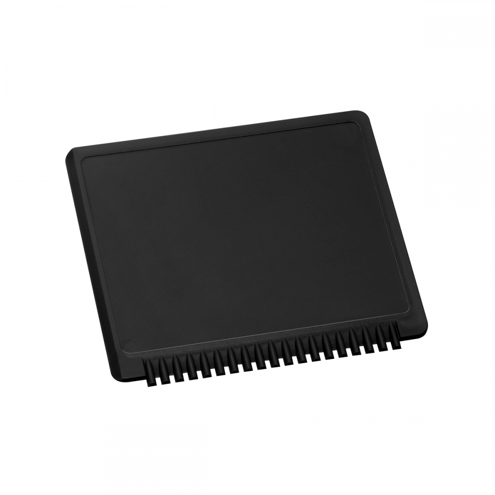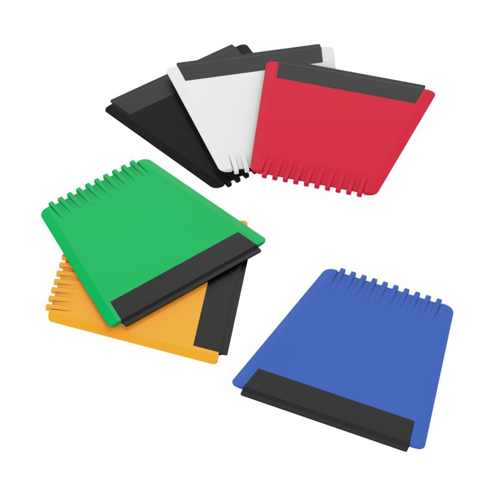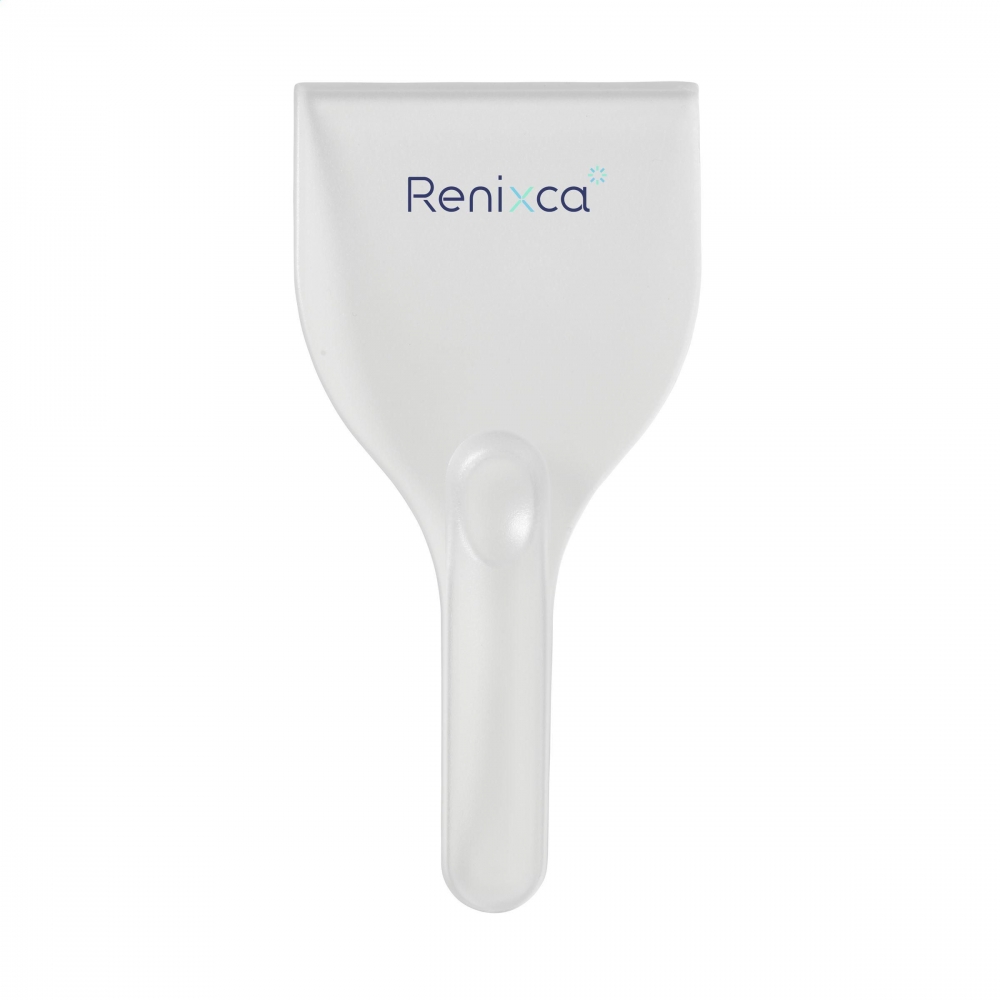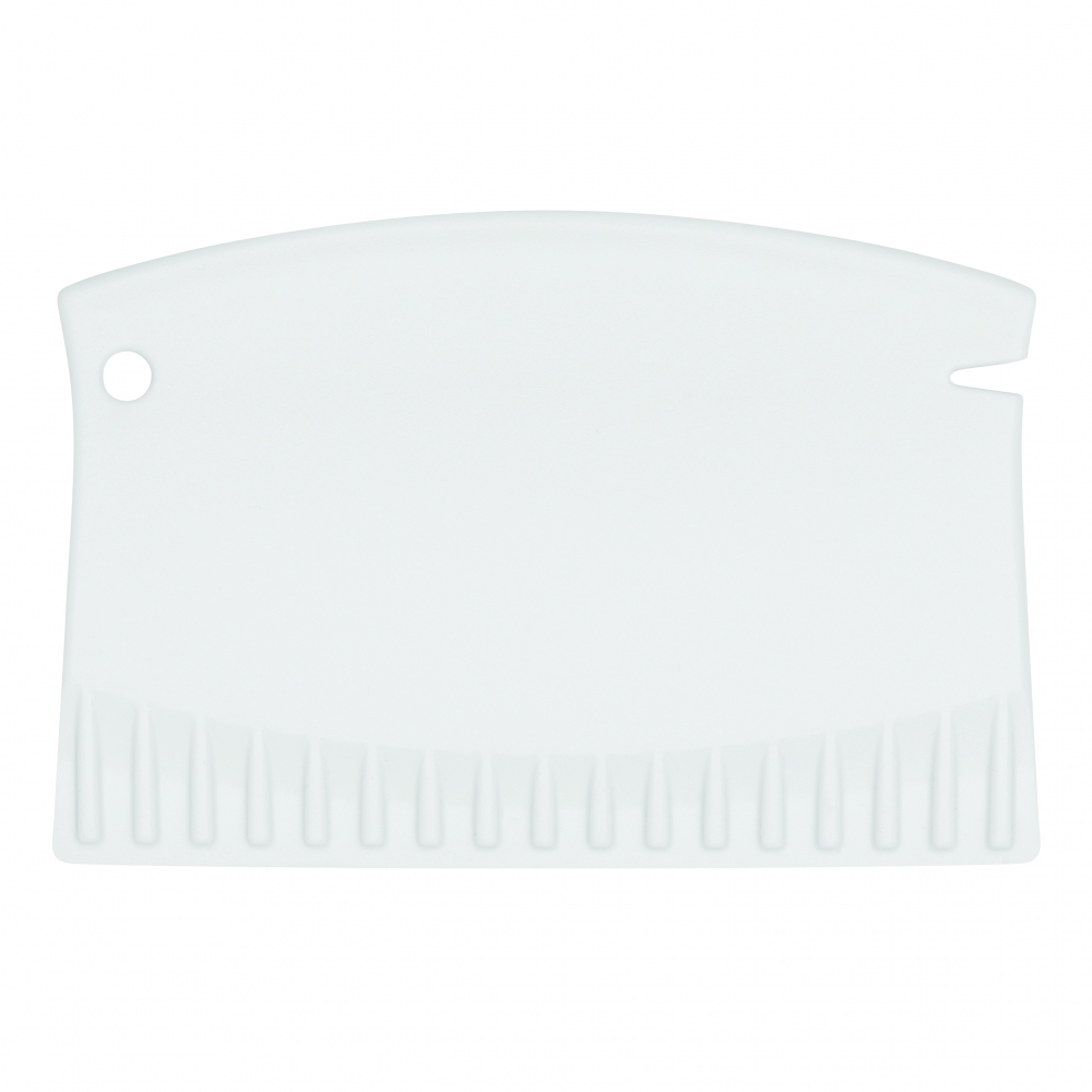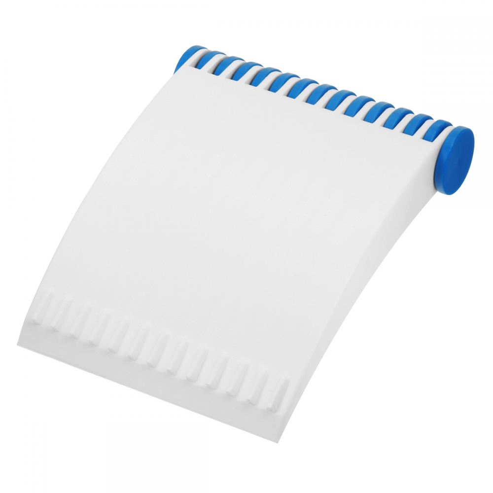 Flacher, rechteckiger Eiskratzer mit großer Werbefläche, Kratzzähnen und glatter Kratzkante. IMould-Veredelung möglich.
