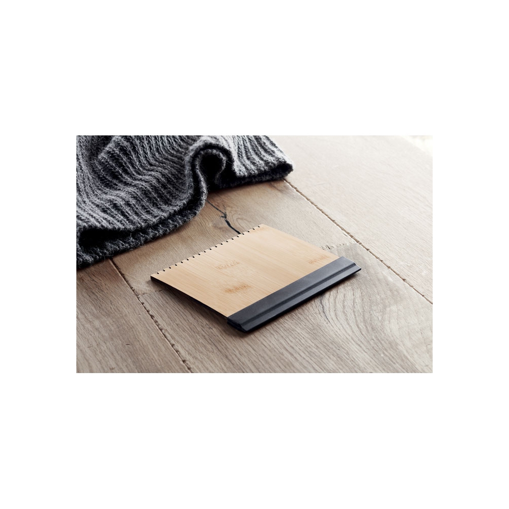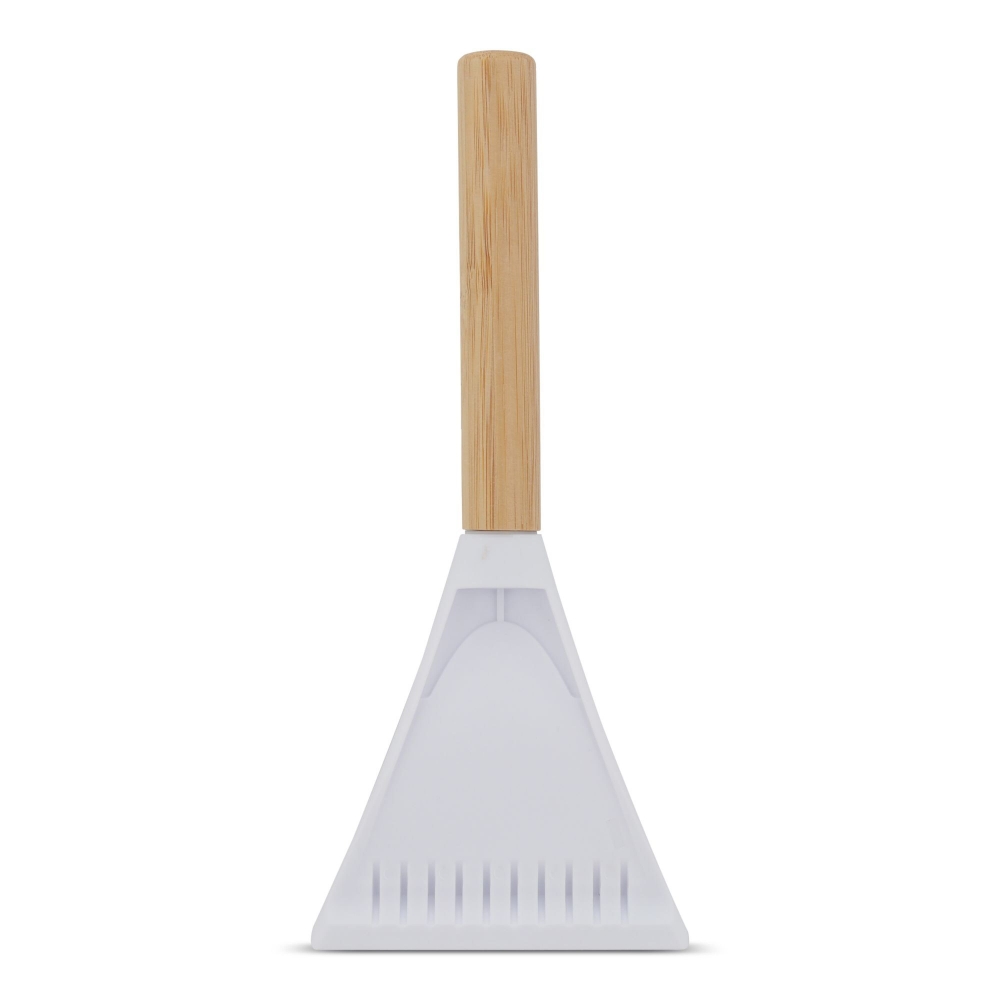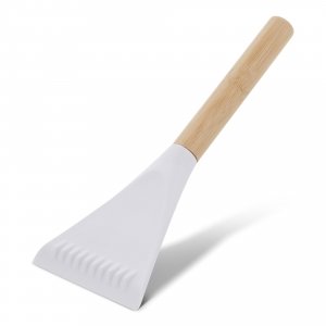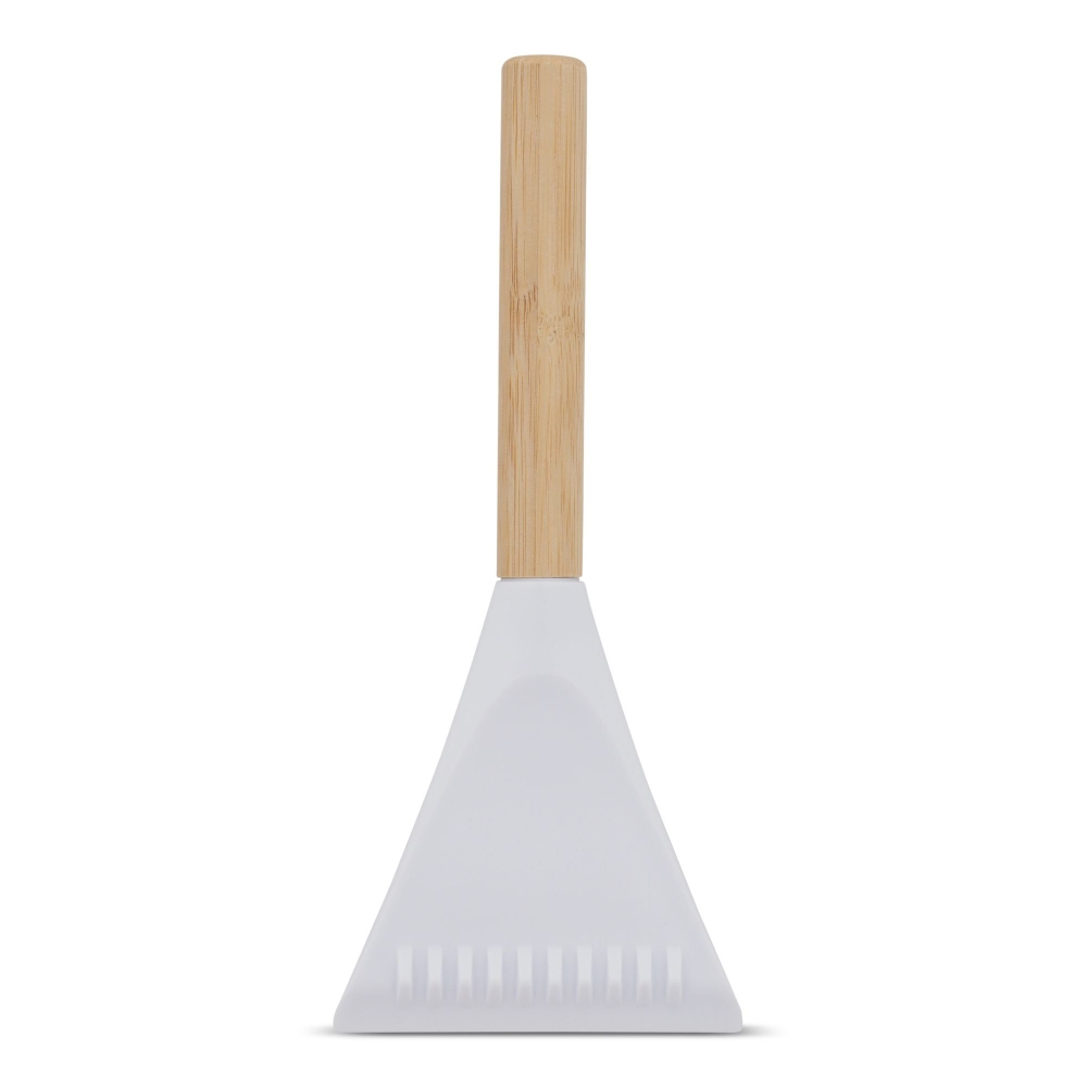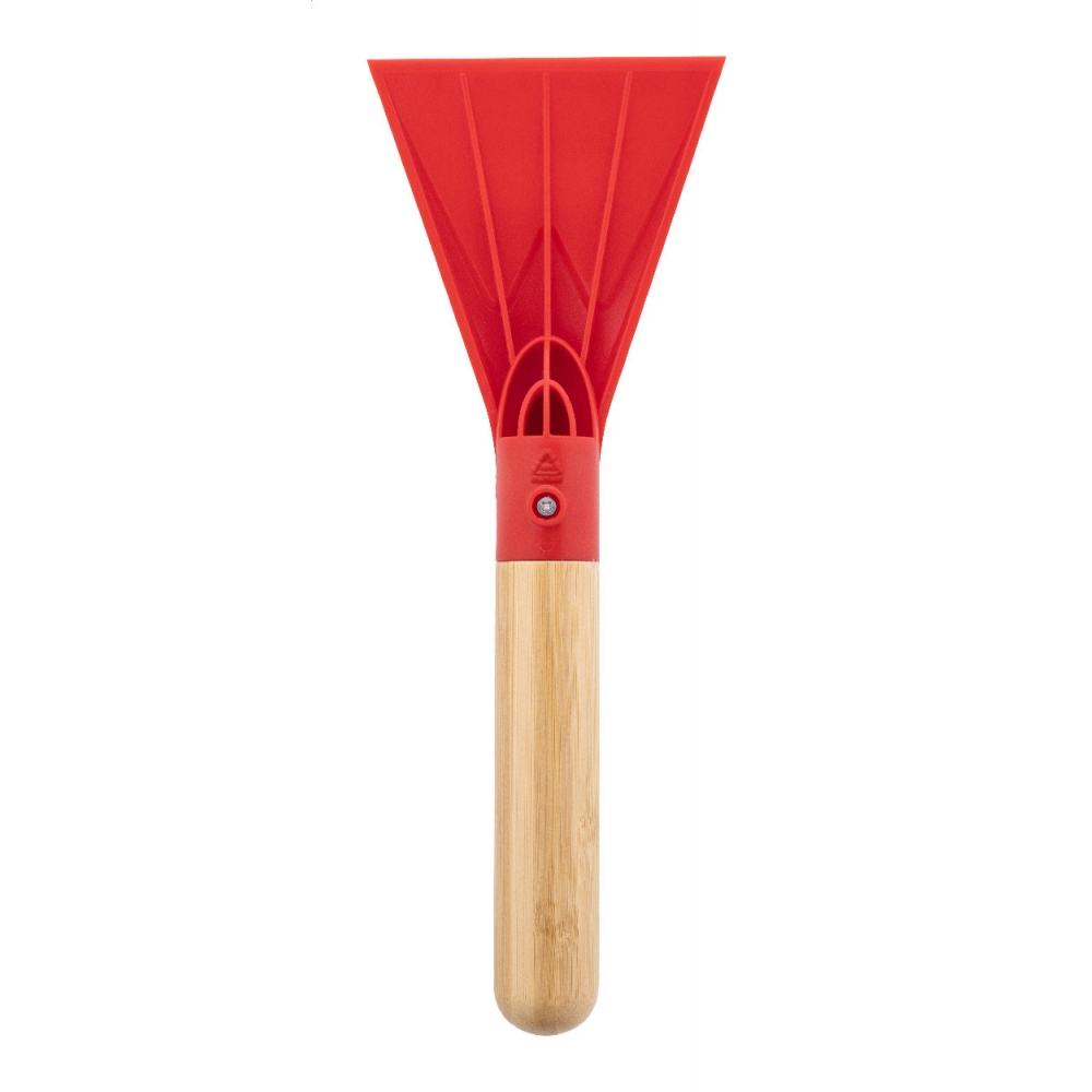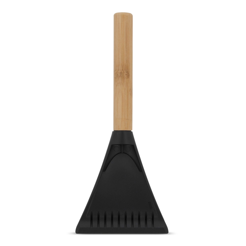 Eiskratzer aus Bambus mit einer gezahnten Kante und einem Weichgummi-Abzieher. Bambus ist ein natürliches Produkt, es kann daher zu leichten Abweichungen in Farbe, Dekor und Maßen kommen.