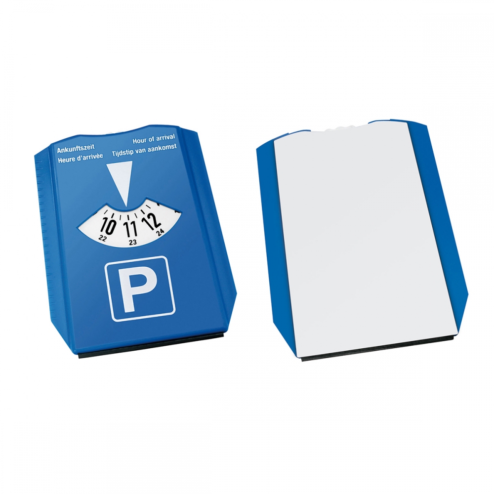 Toppoint Design: Parkscheibe und Eiskratzer. Die Parkscheibe entspricht den europäischen Gesetzen (außer Frankreich). Große Druckfläche auf der Rückseite des Eiskratzers.