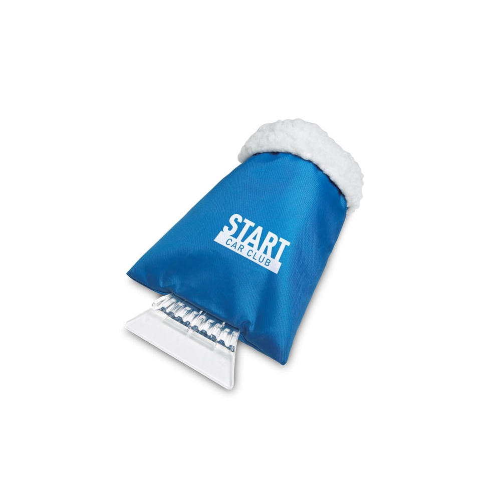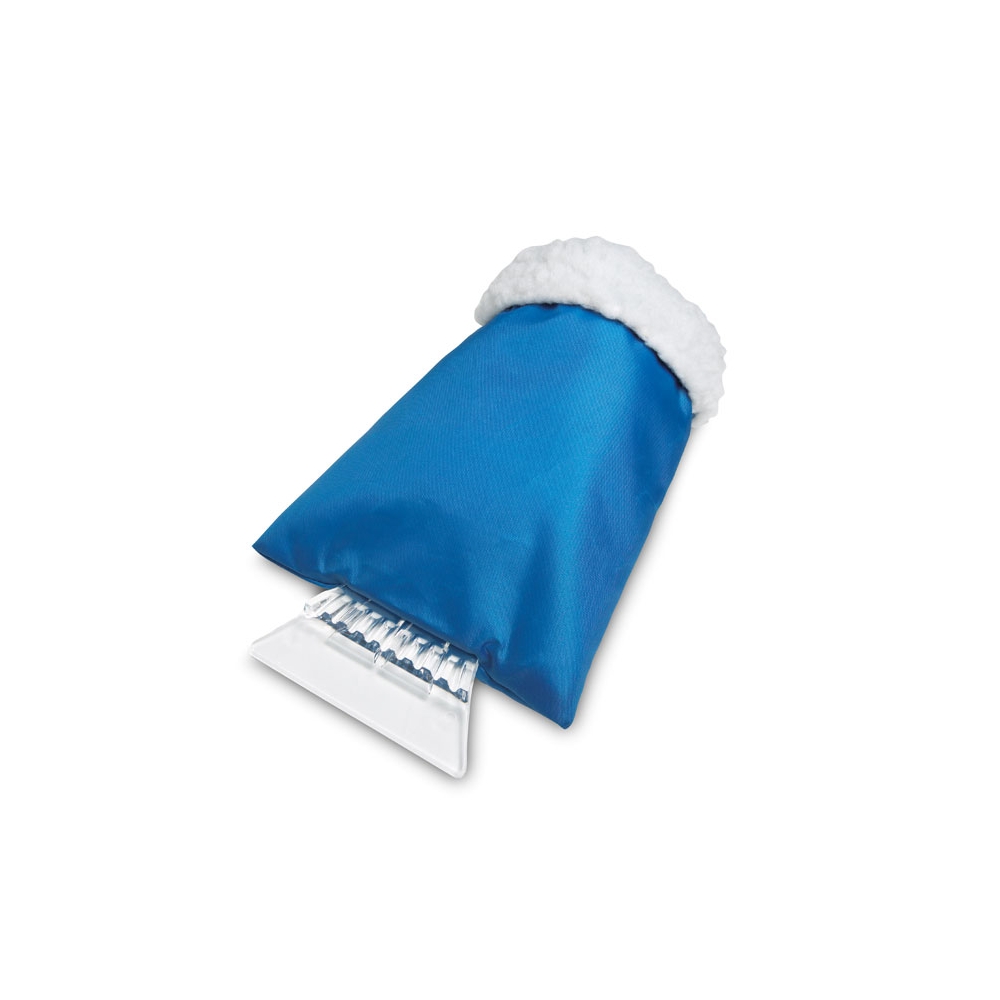 Eiskratzer aus Kunststoff mit Handschuh aus 210T Polyester.