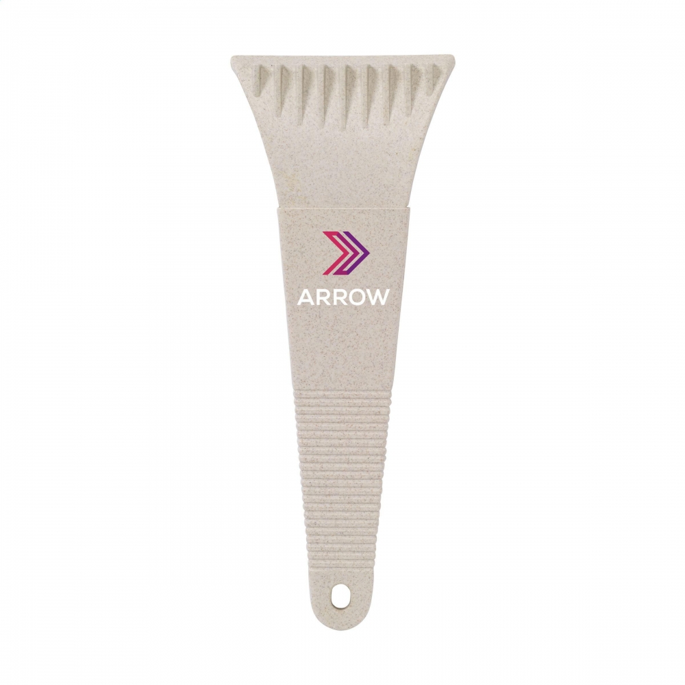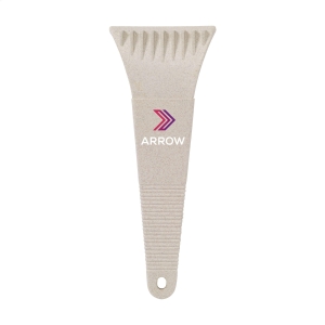 Praktischer Eiskratzer-Schlüsselanhänger aus Weizenstroh. Ausgestattet mit Sägezähnen für das härteste Eis und Reinigungsaufsatz. Weizenstroh-Logo an der oberen Ecke. Einzeln verpackt in einer Kraftpapiertüte. Weizenrohr fördert die Verwendung von natürlichen Rohstoffen und reduziert so den Schadstoffausstoß.
