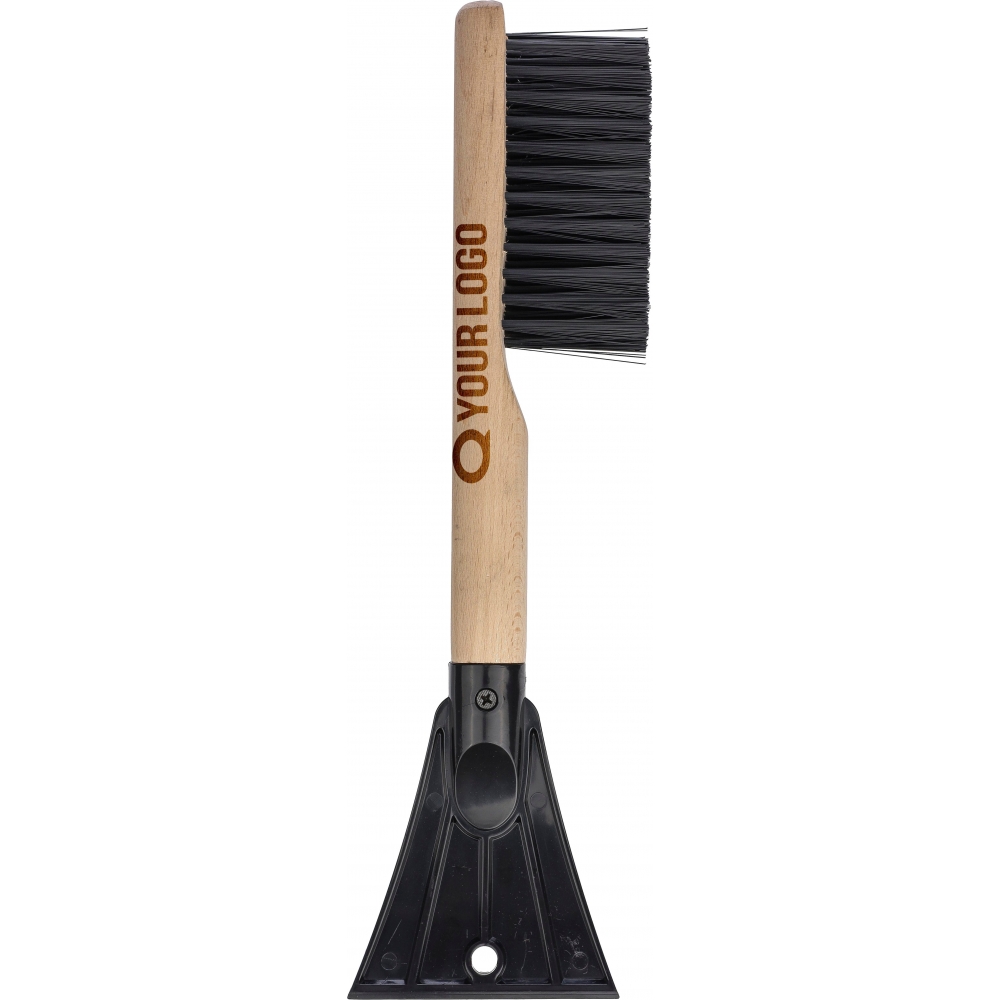 2-in1 Eiskratzer mit Schneebürste. Er verfügt über einen Holzgriff, wodurch er auch bei kalten Temperaturen angenehm in der Hand liegt, sowie über eine Aufhängeöse am Eiskratzer. Ihre Werbung bringen wir mittels einer Lasergravur am Holzgriff an.