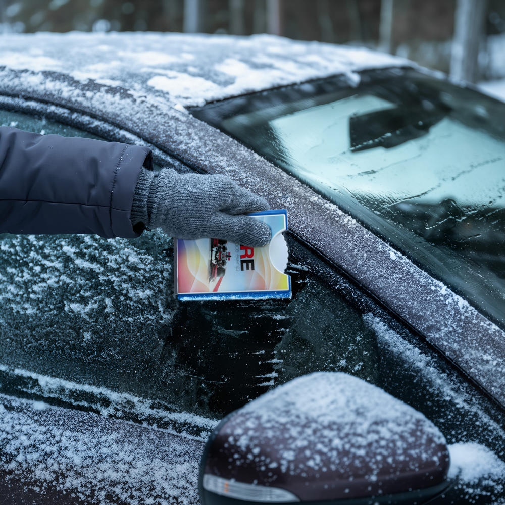 Perfekt zum Entfernen der Eisschicht am Außenspiegel durch die schmale Seite mit Kratzzähnen. Bietet außerdem eine große Werbefläche und eine glatte Kratzkante an der breiten Seite. IMould-Veredelung möglich.