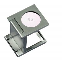 Mit 5-facher Vergrößerung, LED Beleuchtung, Mess Skala am Standfuß und Kunststofflinse (Ø 24 mm). Material: Kunststoffgehäuse Maße offen: 42 x 55 x 55 mm Maße geschlossen: 42 x 55 x 17 mm Gewicht: 22 g
