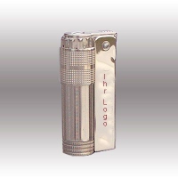 Elektronisches, nachfüllbares Sturmfeuerzeug aus Metall in weiß oder schwarz mit verchromten Teilen. In silberner Geschenkverpackung. Lasergravur möglich - Einzelnamengravur schon ab 50 Stück. Maße: 71 x 27 x 13 mm. Farbe/n: Schwarz, Silber. Werbeanbringung: 40 x 15 mm.