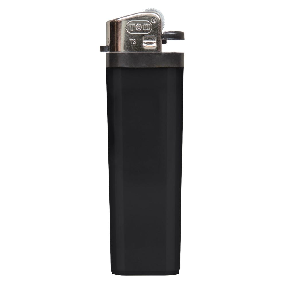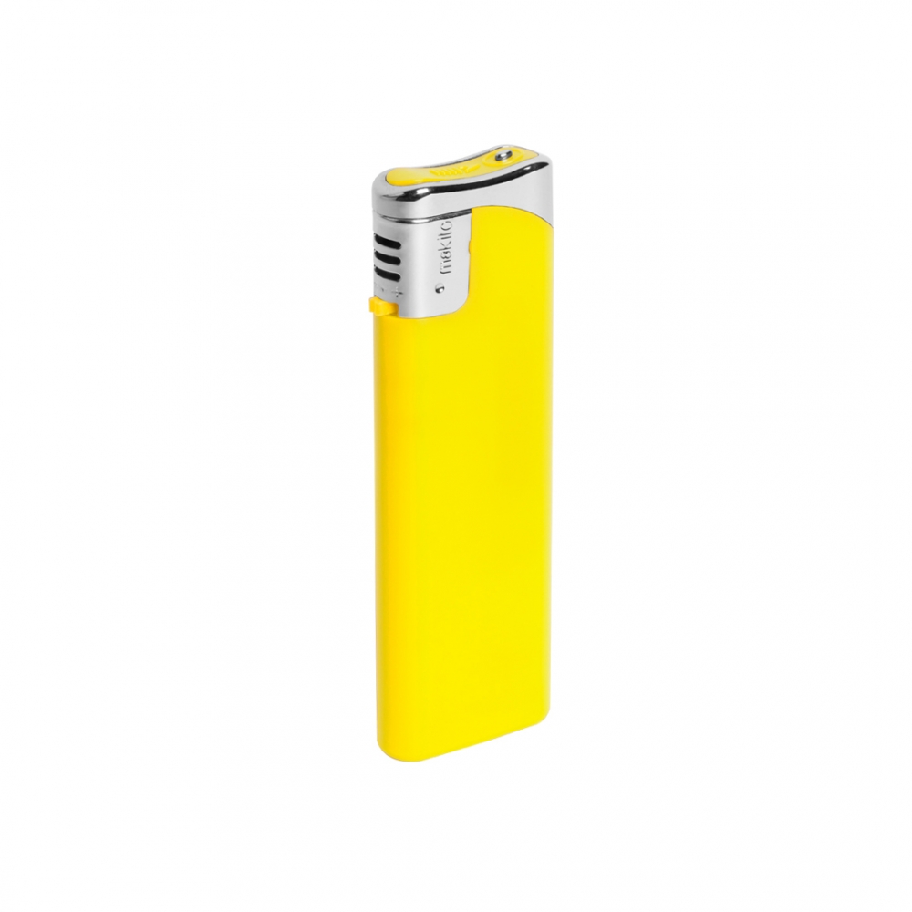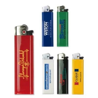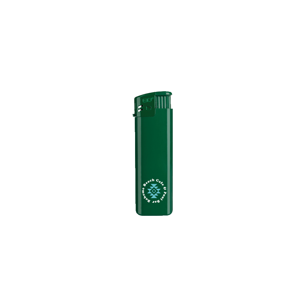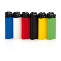 Schönes Elektronikfeuerzeug (nachfüllbar) aus Kunststoff. Selbstverständlich verfügt dieses Modell über die vorgeschriebene Kindersicherung. Ihre Werbung drucken wir auf eine Seite des Feuerzeuges.