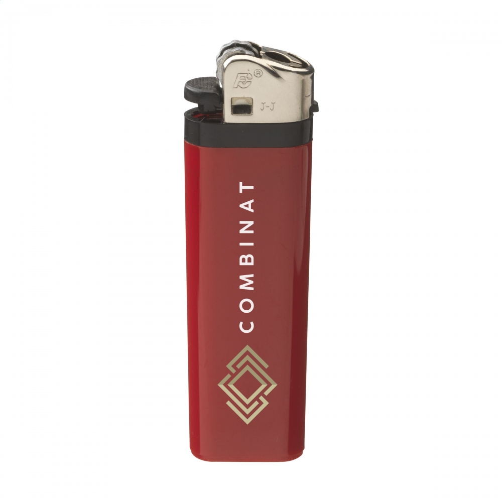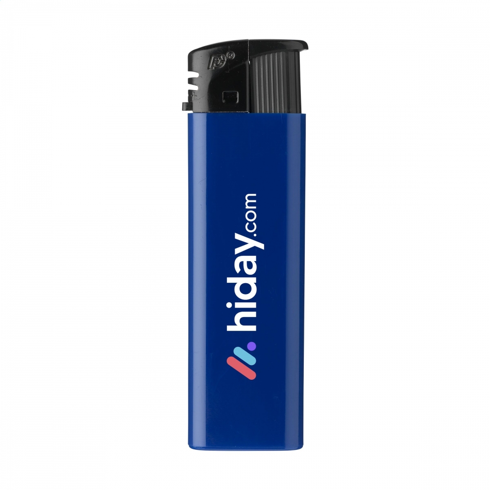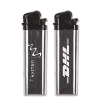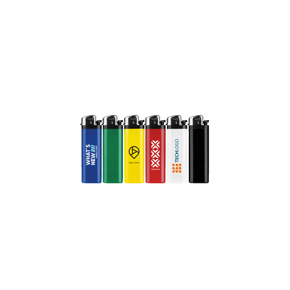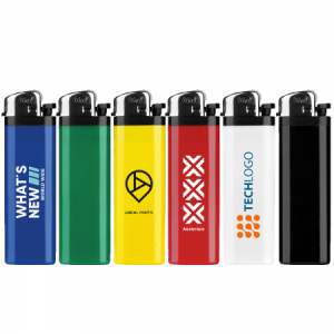 Elektronik Feuerzeug in diversen Farben, nachfüllbar. Die Flammengröße lässt sich stufenlos verstellen. Ihre Werbung drucken wir für Rechtshänder lesbar auf eine Seite.