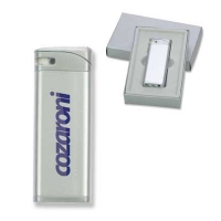Elektronisches, nachfüllbares Metall-Feuerzeug in einer Geschenkverpackung. Kindersicherung. Lasergravur möglich, ab 25 Stück auch mit Einzelnamengravur. Abmessungen: 66 x 29 x 10 mm Farbe/n: Silber. Werbeanbringung: 45 x 20 mm.
