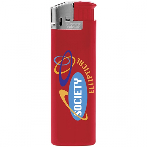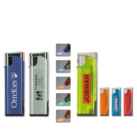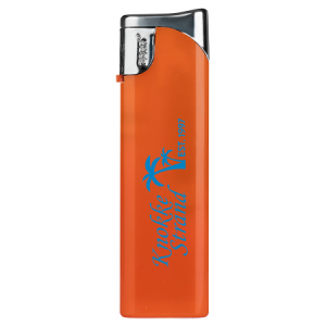 Elektronisches, nachfüllbares, transluzentes Feuerzeug mit LED-Licht und Kindersicherung. Abmessungen: 81 x 24 x 9 mm. Farbe/n: Transparent Blau, Transparent Orange, Transparent Rot, Transparente Hellgrün. Werbeanbringung: 50 x 15 mm.