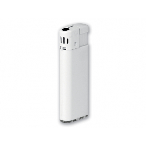 Elektronisches Einwegfeuerzeug mit silberner Kappe. In diversen transparenten Farben. Kindersicherung. Abmessungen: 79 x 23 x 9 mm. Farbe/n: Transparent Hellblau, Transparent Orange, Transparent Rot, Transparent Weiß, Transparente Hellgrün. Werbeanbringung: 45 x 17 mm.