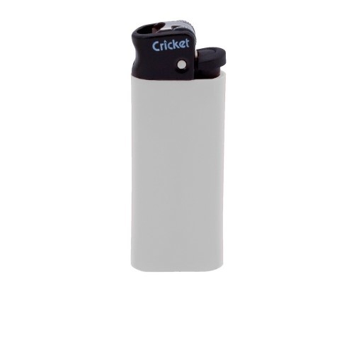 Einwegfeuerzeug mit Reibrad von Cricket mit silberner Nickelkappe. Hardcolour. Mit Kindersicherung. Maße: 80 x 22 x 10 mm. Farbe/n: Blau, Dunkelgrün, Gelb, Hellrot, Schwarz, Weiß. Werbeanbringung: 50 x 14 mm.