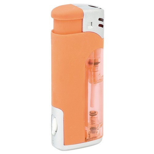 Ergonomisch geformtes Elektronikfeuerzeug mit gummierter Oberfläche, nachfüllbar. Die Flamme lässt sich stufenlos verstellen. Der Werbeaufdruck wird im Digitaldruck (mehrfarbig) für Rechtshänder lesbar angebracht.