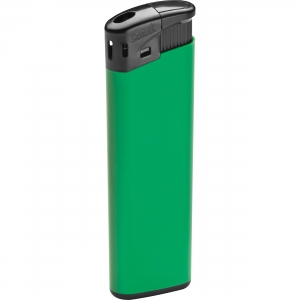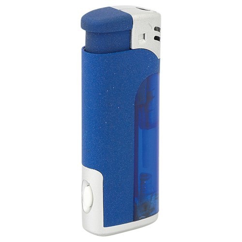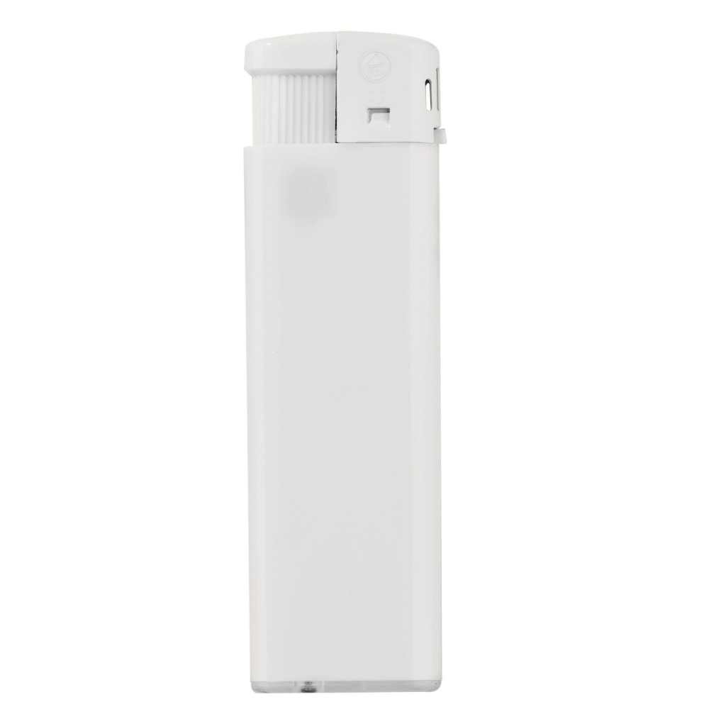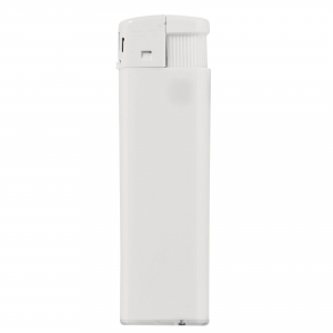 Elektronisches, nachfüllbares Feuerzeug in gefrosteten Farben. Große Werbefläche. Mit Kindersicherung.