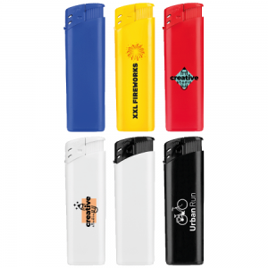 Elektronik Feuerzeug in diversen Farben. Ihre Werbung drucken wir für Rechtshänder lesbar auf eine Seite.