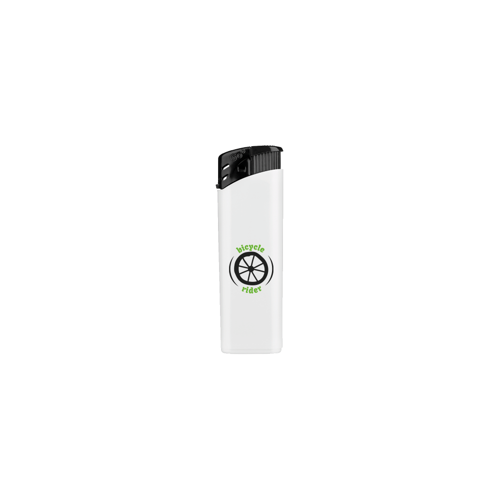 Elektronisches, nachfüllbares Feuerzeug in hardcolour Farben. Liegt gut in der Hand. Mit Kindersicherung. Maße: 82 x 24 x 10 mm. Farbe/n: Blau, Gelb, Grün, Rot, Schwarz, Weiß, Weiß/Schwarz. Werbeanbringung: 55 x 13 mm.
