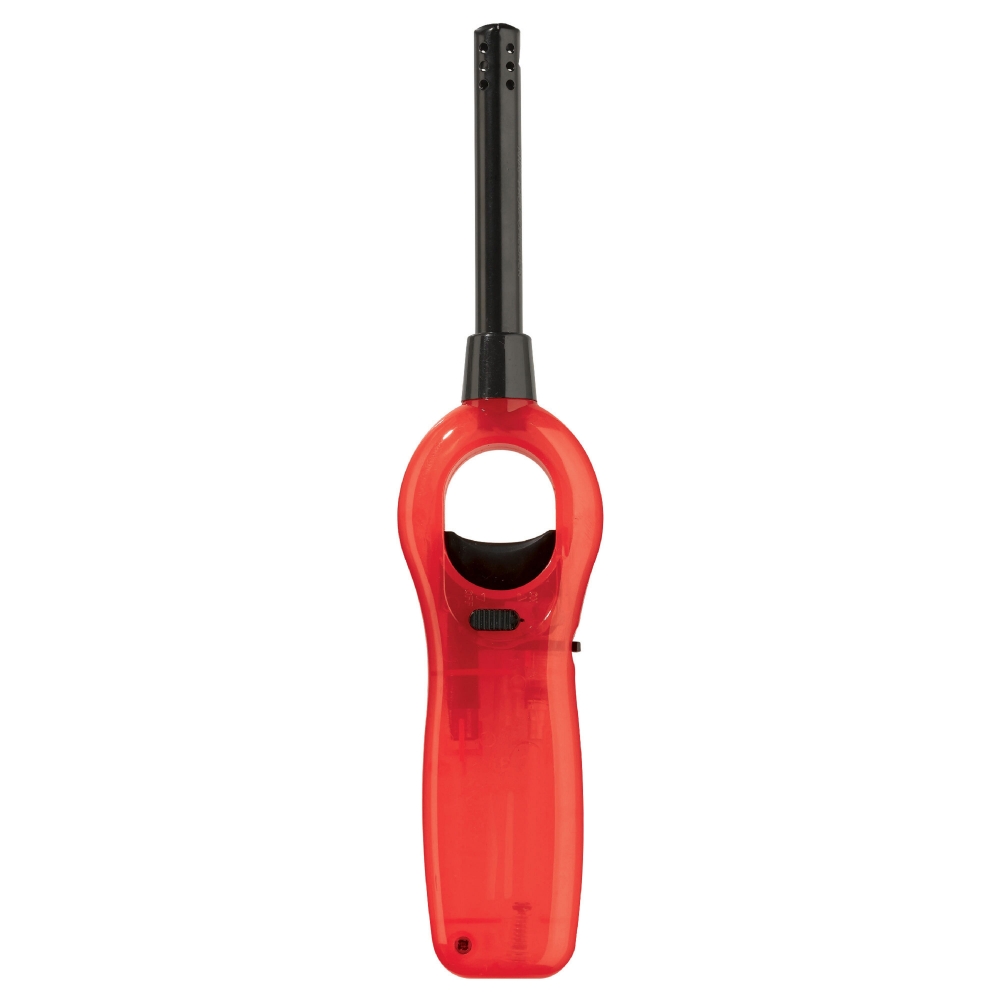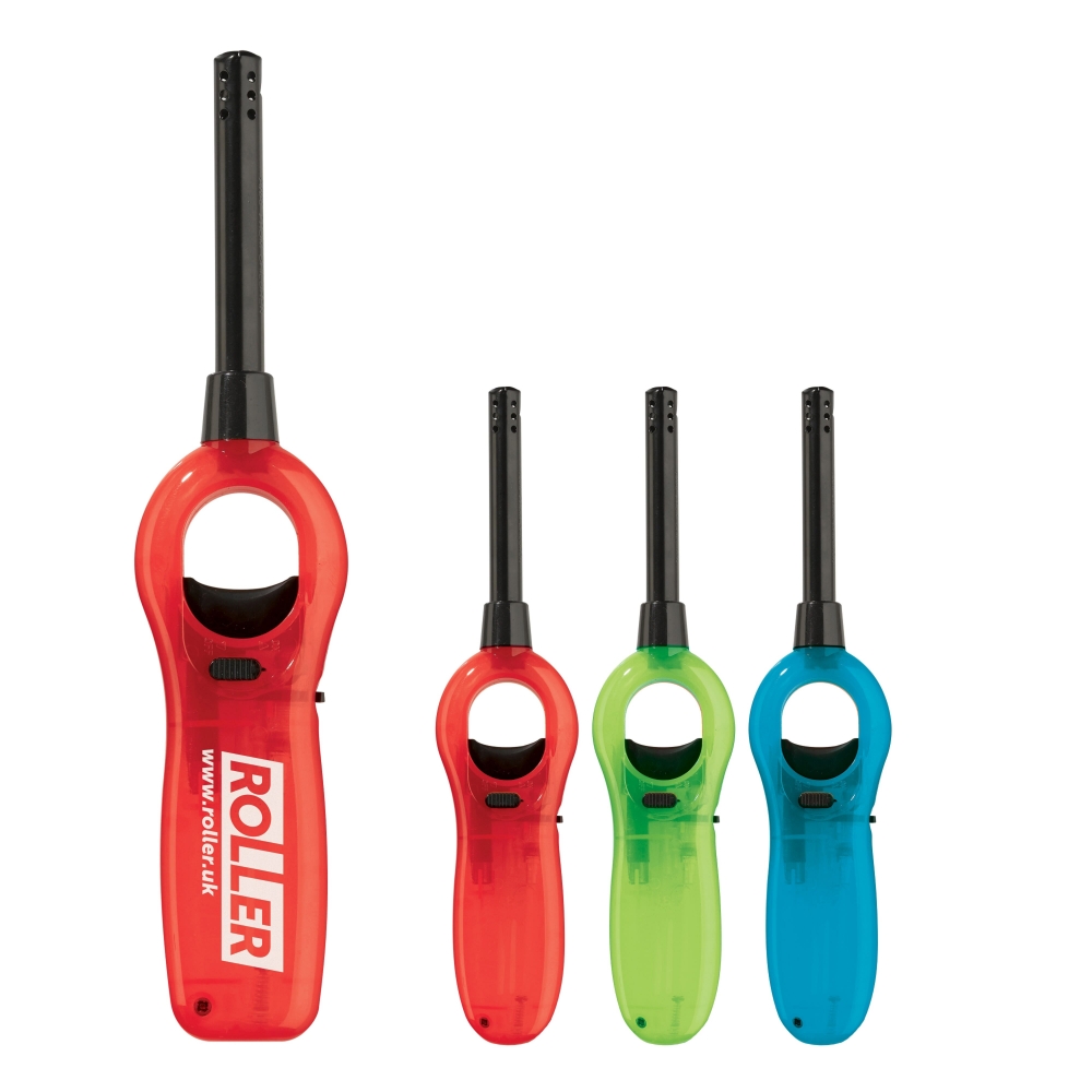 Elektronik Feuerzeug mit verlängertem Aufsatz für schwer erreichbare Dochte, nachfüllbar. Die Flammengröße lässt sich stufenlos verstellen. Ihr Werbeaufdruck erfolgt auf einer Seite.