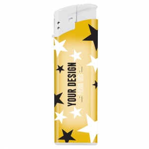 Elektronisches Feuerzeug für eine individuelle Werbeanbringung mittels Label in Full Colour. Kindersicherung. Ab 5.000 Stück lieferbar.