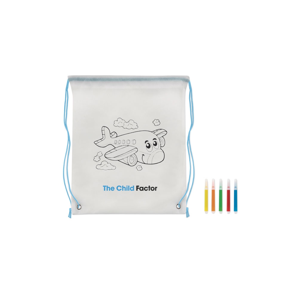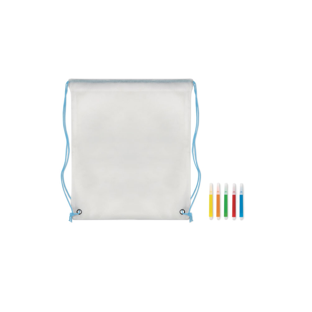 Artikel-Nr: OCBMO9887-66Gestaltbarer Non Woven Kordelzugbeutel. Mit 5 Filzstiften. 80 g / m². Nicht waschbar.