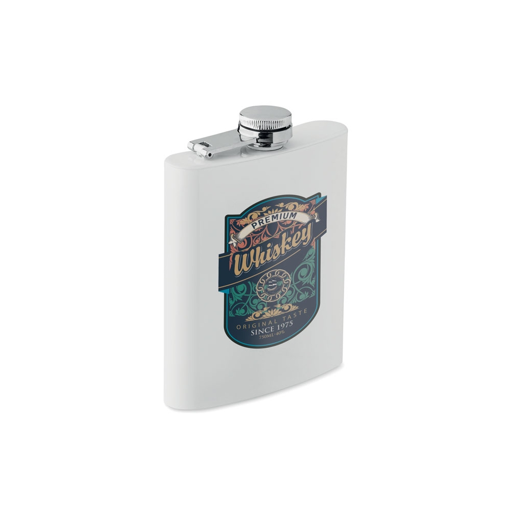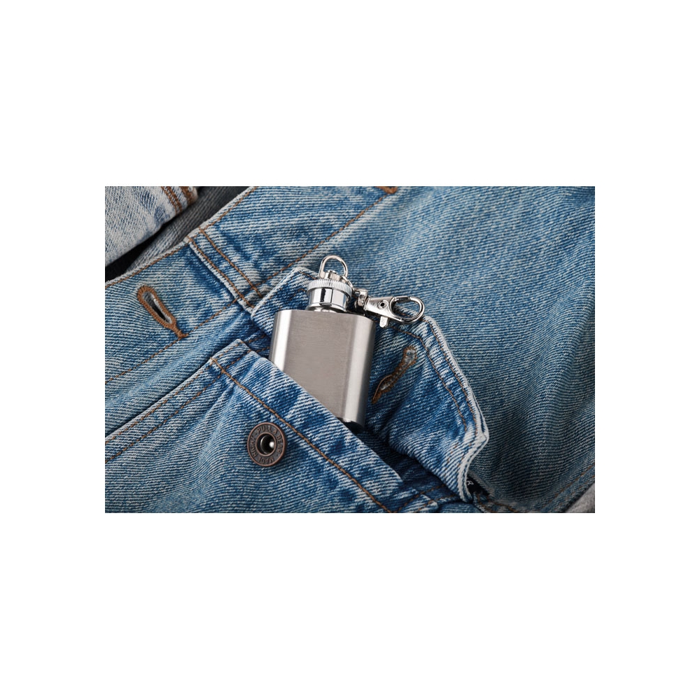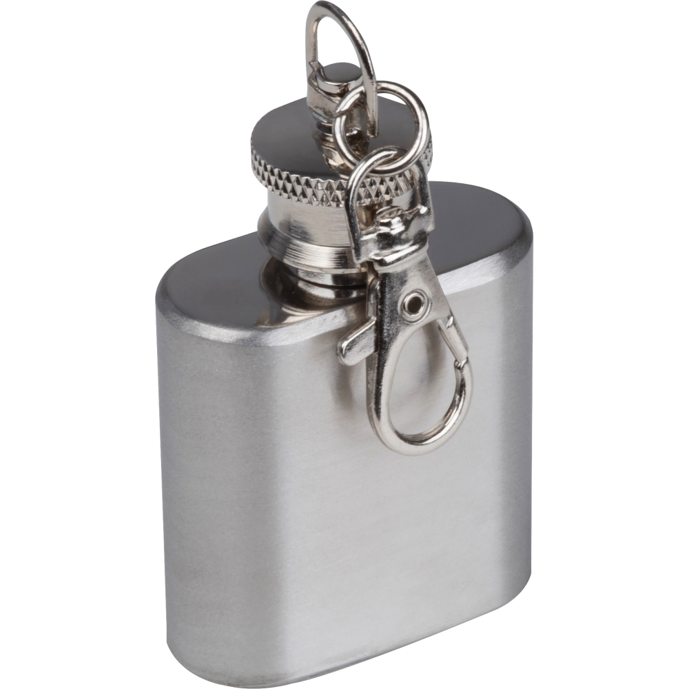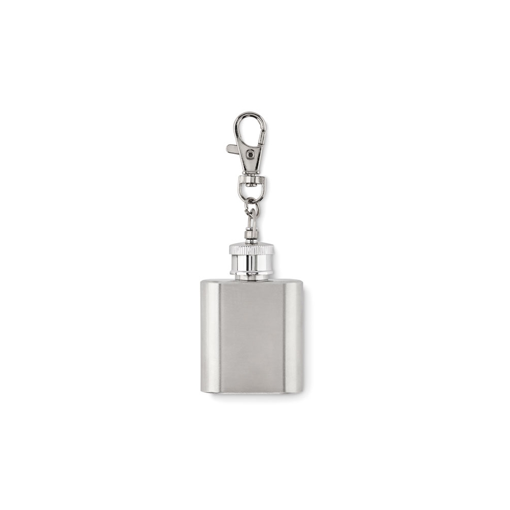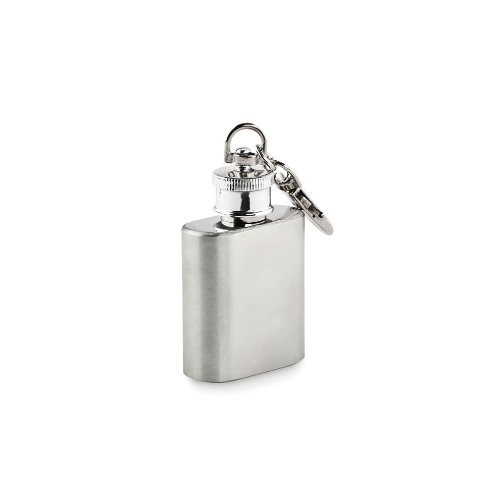 Artikel-Nr: MCM9462007Mini-Flachmann aus rostfreiem Edelstahl in Form eines Schlüsselanhängers. Drehverschluss und 30ml Fassungsvermögen. Ihre Werbung gravieren wir auf die Vorderseite.