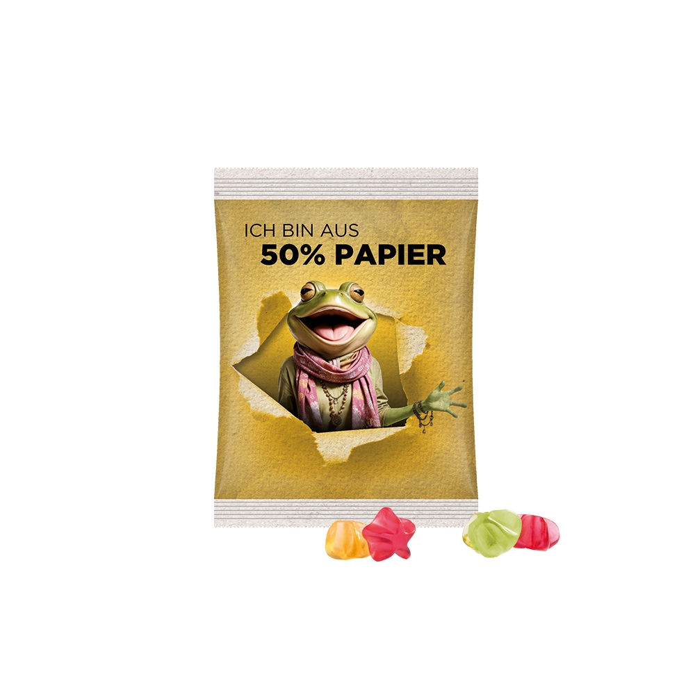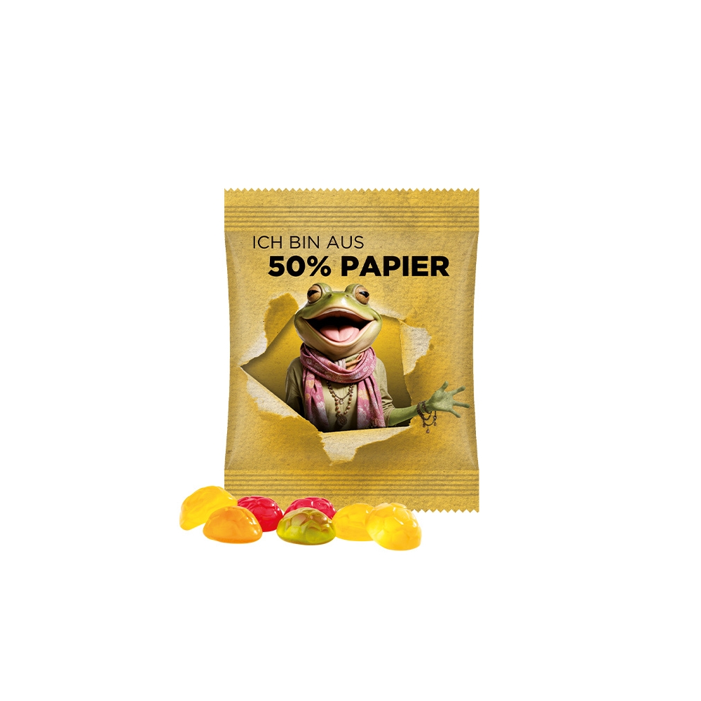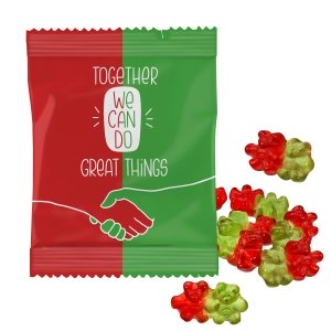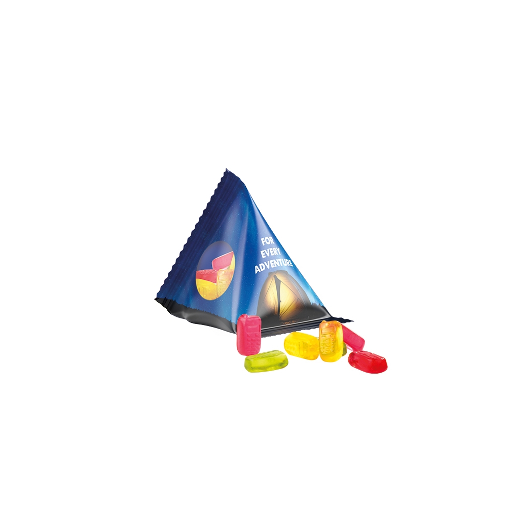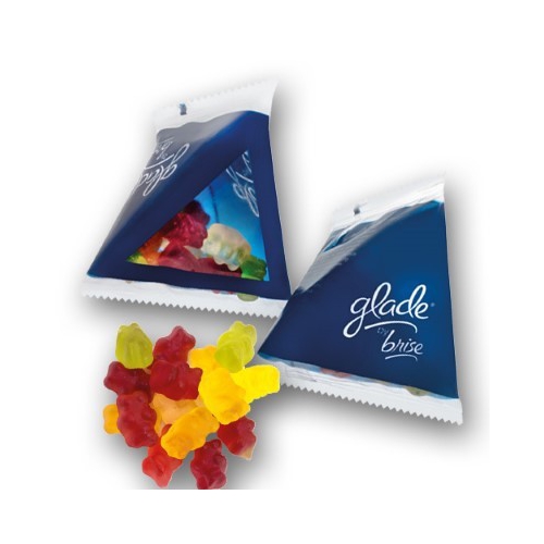 Verpackung: Lebkuchenmann, Zuckergussstube, Lolly und Fruchtgummi werden in bedrucktem Karton verpackt.