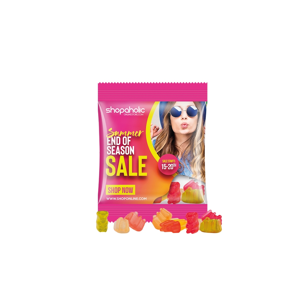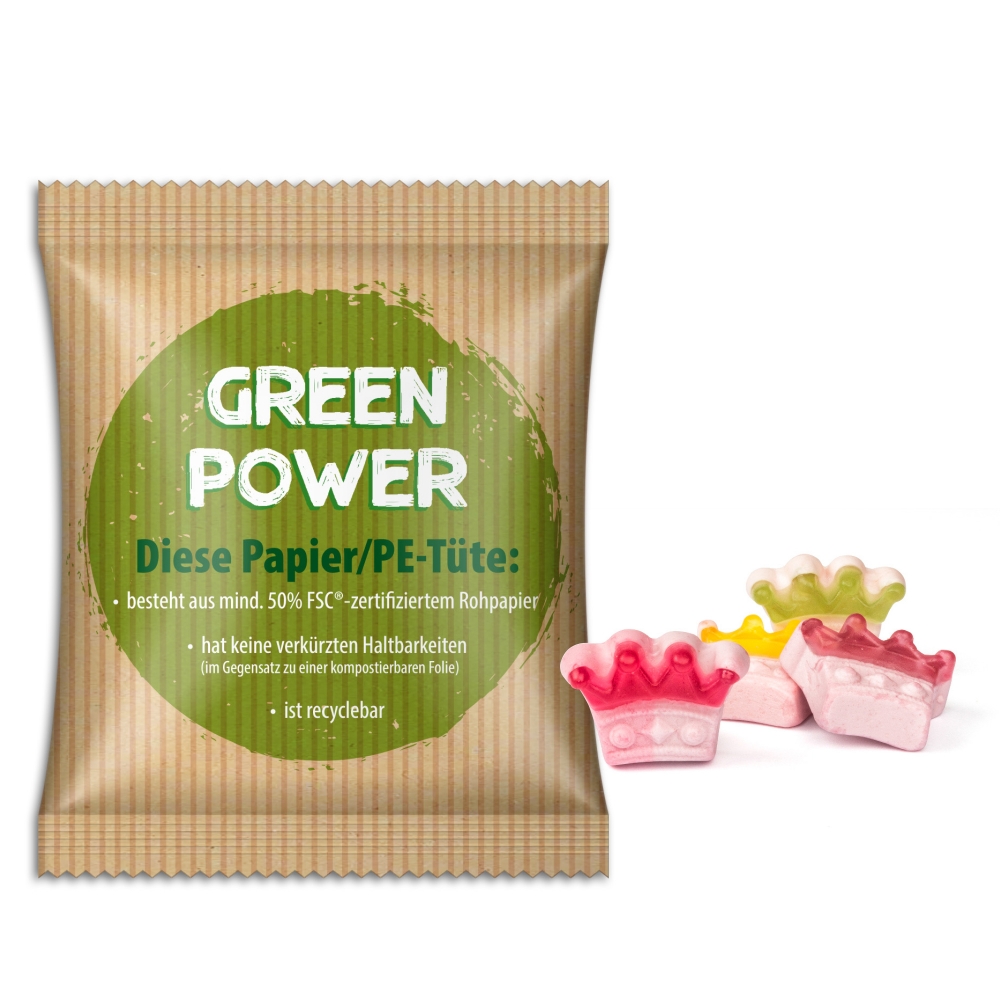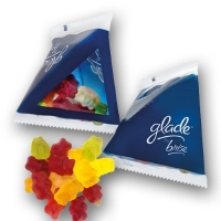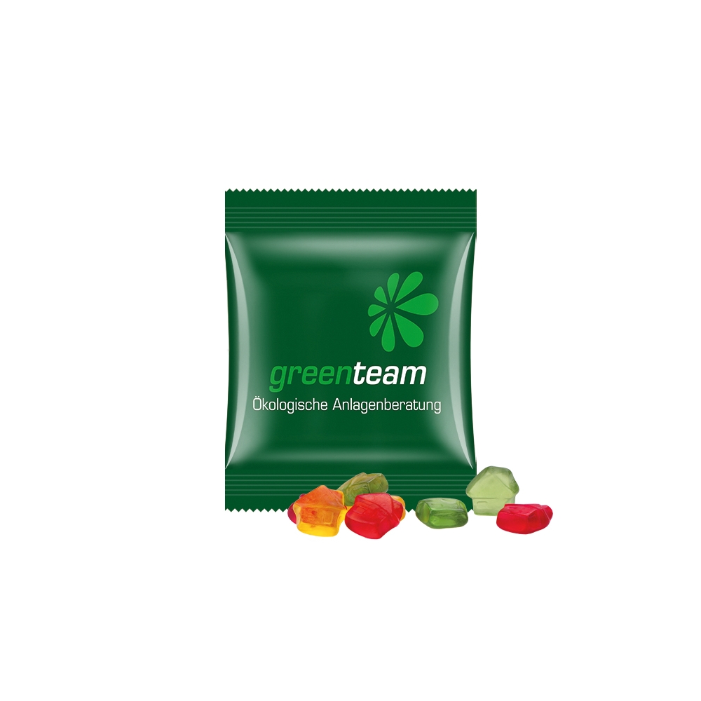 Verpackung: Lebkuchenmann, Zuckergussstube, Lolly und Fruchtgummi werden in bedrucktem Karton verpackt.