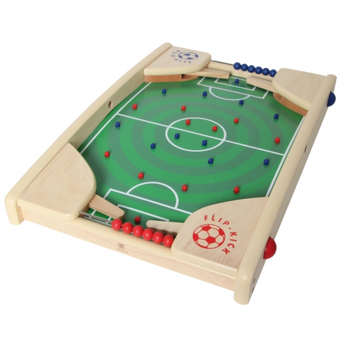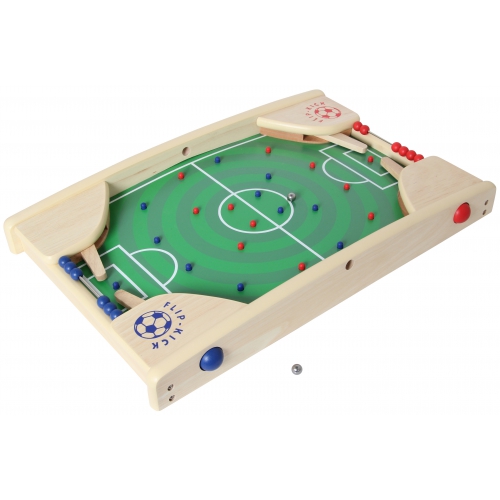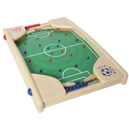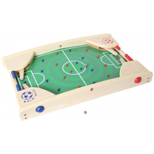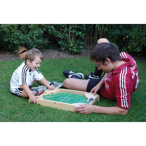 Artikel-Nr: 375106741Ein toller Fußballspaß für zwei Ballkünstler. Eine Mischung aus Flipper und Kicker. Die Spielfläche ist so gewölbt, dass die Kugel zu einem der beiden Tore rollt. Das Spiel beginnt mit dem Einwurf der Metallkugel durch die Startlöcher in den seitlichen Rahmenteilen. Dann schießen die Spieler die Kugel mit den beiden Flipper-Schenkeln in Richtung gegnerisches Tor. Das Ganze funktioniert wie bei einem Pinball-Spiel durch schnelles Drücken auf die seitlichen Knöpfe. In das Tor zu treffen ist nicht ganz einfach, es stehen nämlich genügend gegnerische und eigene Spieler in Form von kleinen Gummi-Knöpfen im Weg. Auf jeder Seite werden die e ...